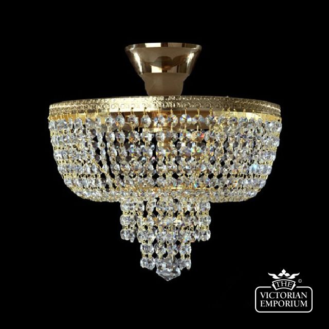 Basket chandeliers are suitable for low, standard, and high ceilings and medium or large rooms. Dressed with Bohemian Czech Lead crystal 30% PbO & 24% PbO.