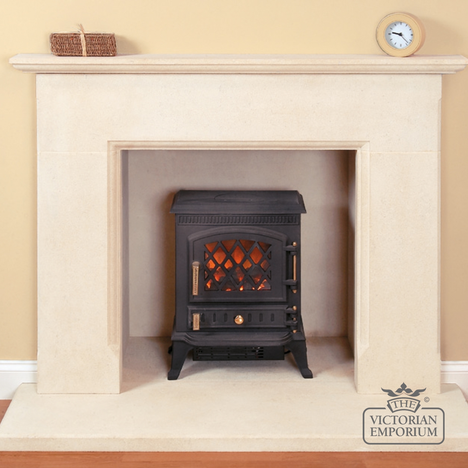 This is a beautiful fireplace hand carved out of Bath Stone with a simple design and clean lines. Price includes Hearth and Back Panel