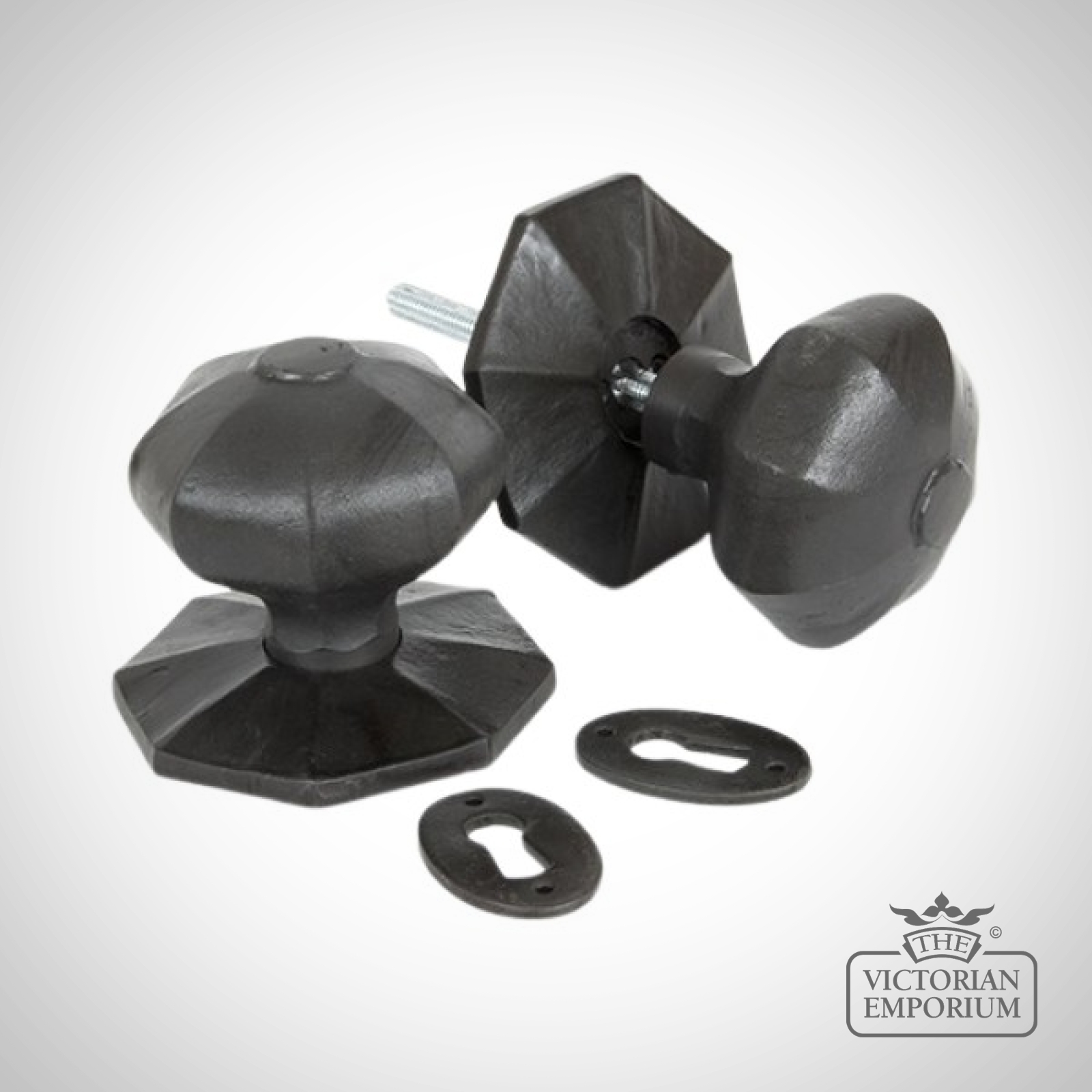 Our Octagonal mortice/rim knobs are supplied with a loose collar to allow them to be fitted flushed to the door or can alternatively be used in conjunction with a rim lock.