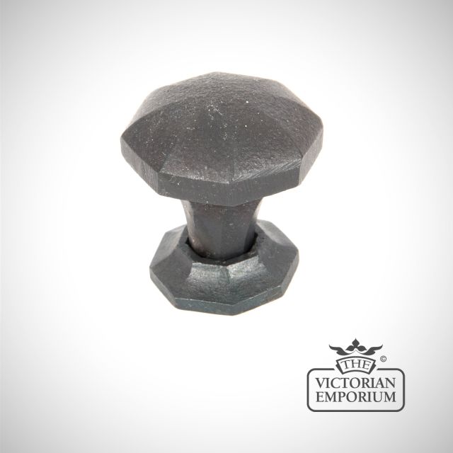 A decorative octagonal cabinet knob finished in beeswax in two sizes