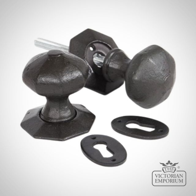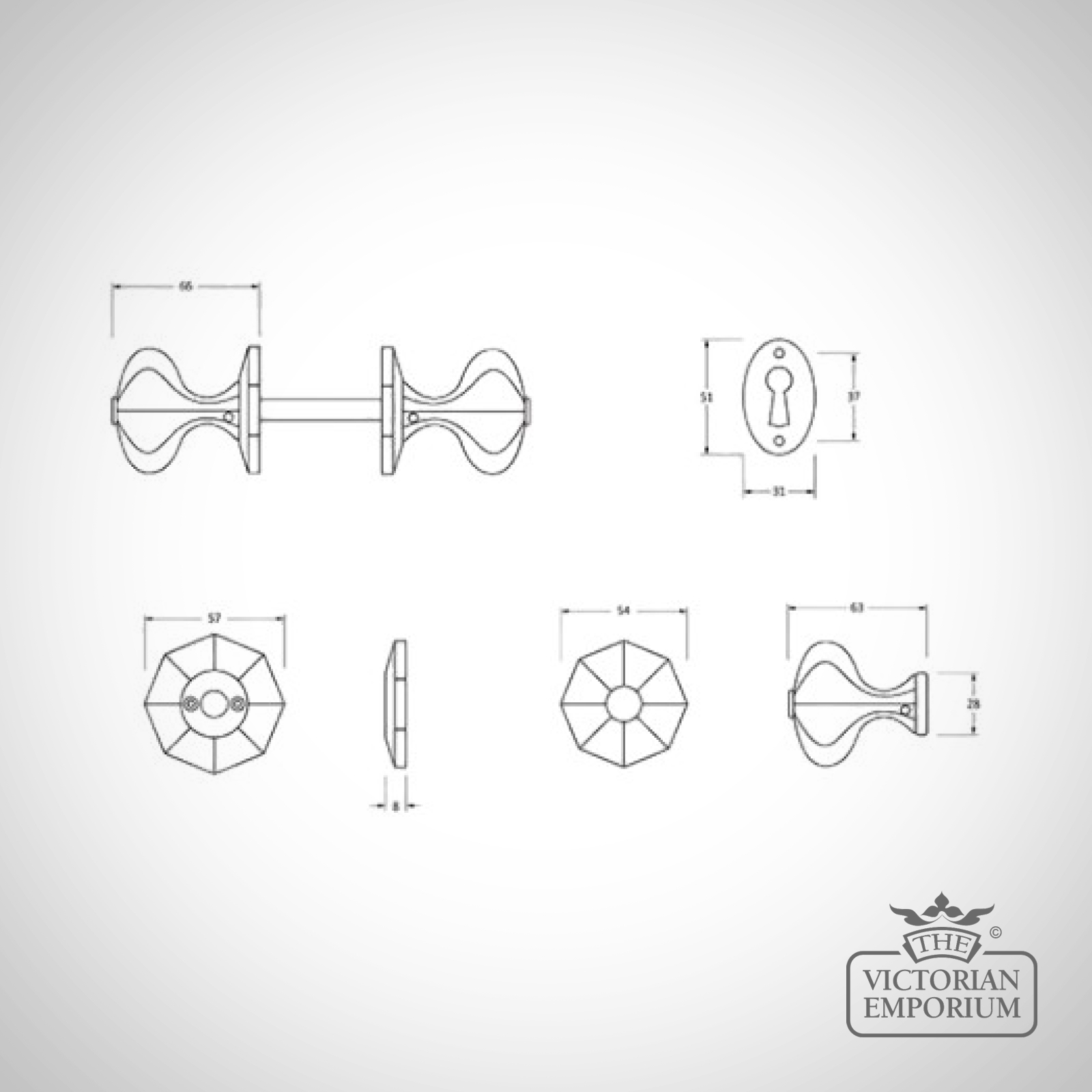 Our Octagonal mortice/rim knobs are supplied with a loose collar to allow them to be fitted flushed to the door or can alternatively be used in conjunction with a rim lock.