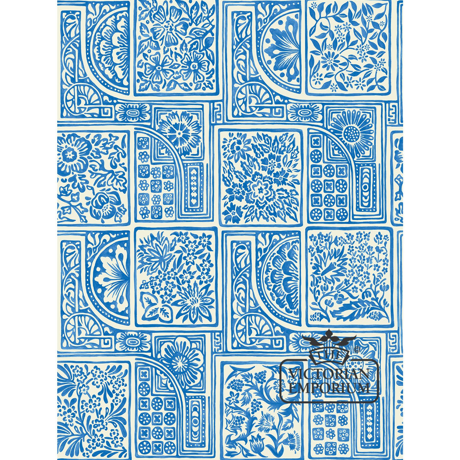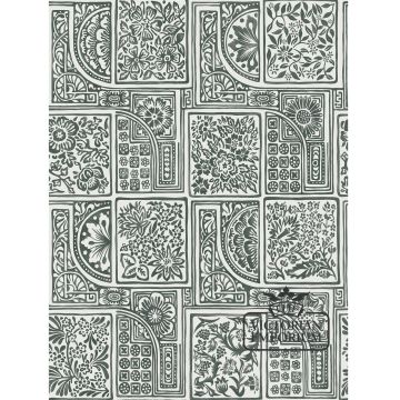 Bellini is a re-working of a surface print wallpaper design featuring a pretty water-coloured arrangement of tiles containing loosely sketched florals and geometrics. Bellini is presented in four simple colourings of charcoal and white, china blue on white, white on grey and a subtle gilver on stone.