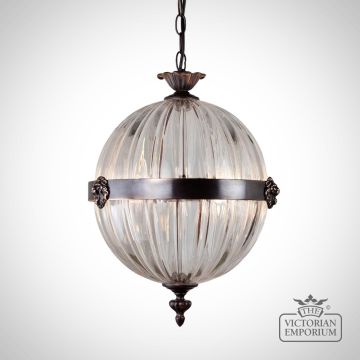 This beautiful and elegant globe pendant has a scalloped shape and can be supplied with a choice of ornamentation on the central band. Available in a choice of bronze, distressed brass or brushed brass.