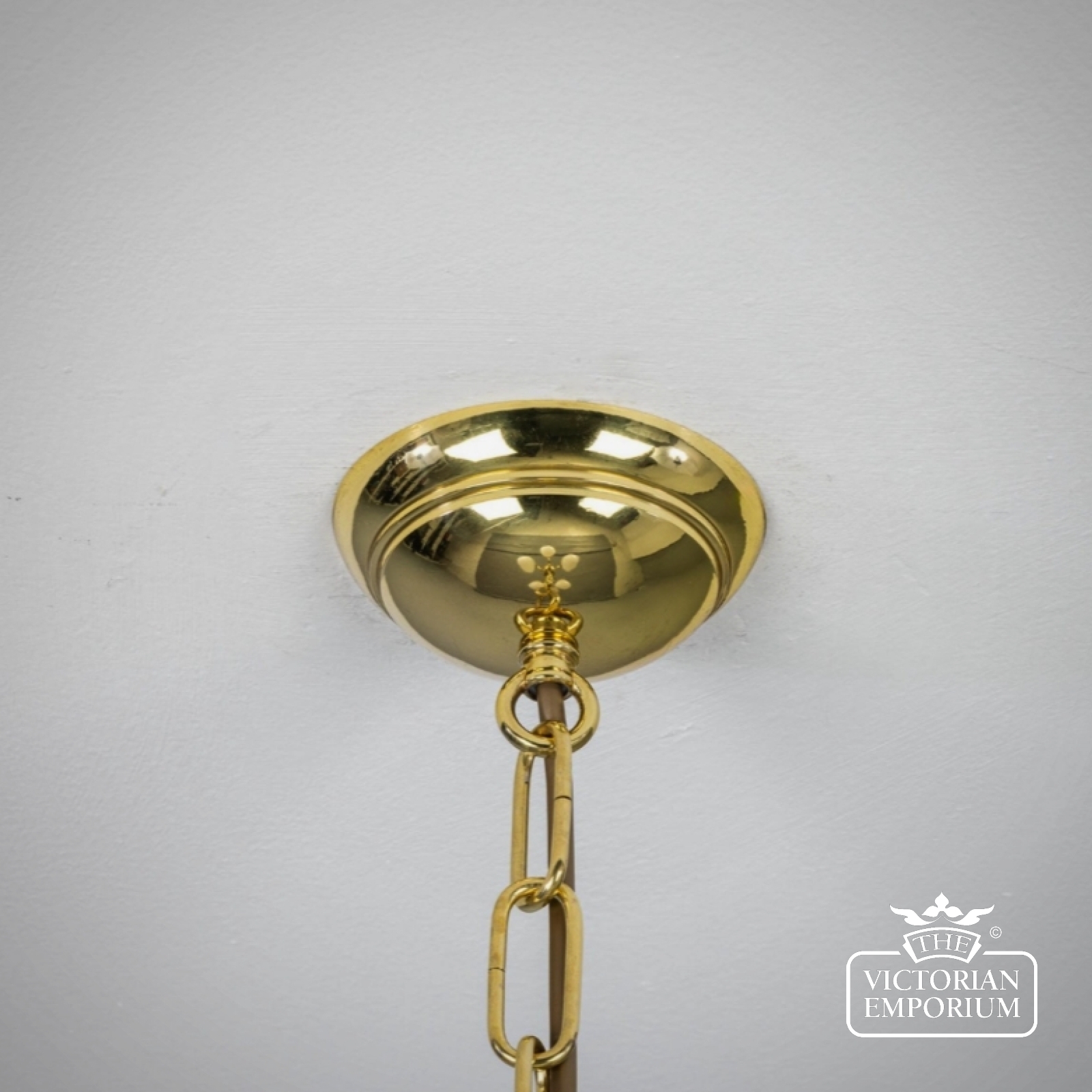 A minimum of 21cm must be added to the chandelier height to include one link and cup. All chandeliers come with 3 or 5 links and an ornate cup to cover the electrical wires. All of our crystal chandeliers (armed) are normally posted out unassembled and are supplied with bulbs (35mm, clear candle, SES/E14 unless otherwise stated) and a standard open screw hook (this hook must be securely fixed into a joist) to the hang chandelier.