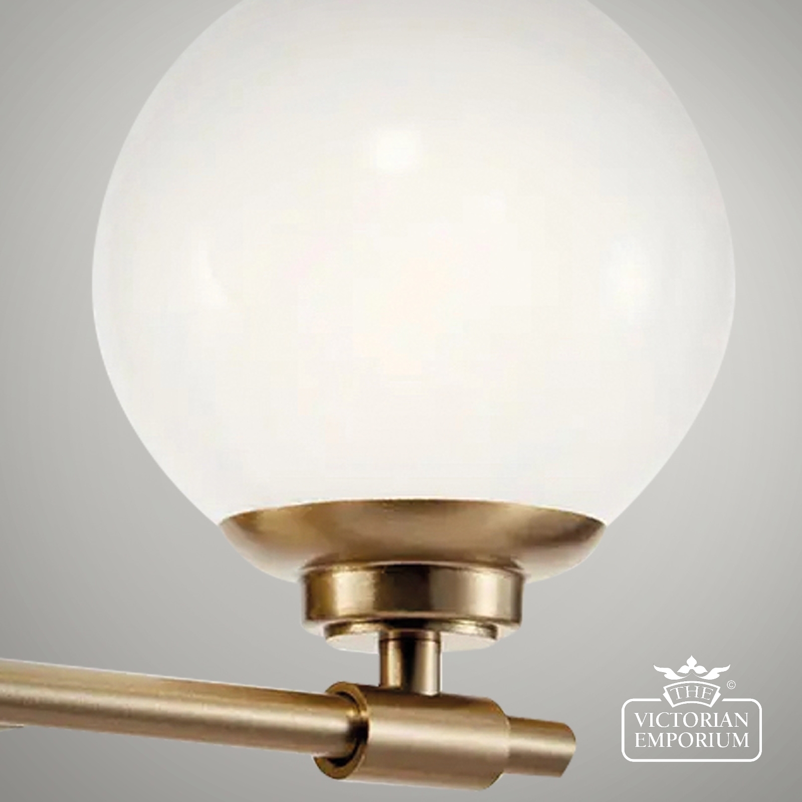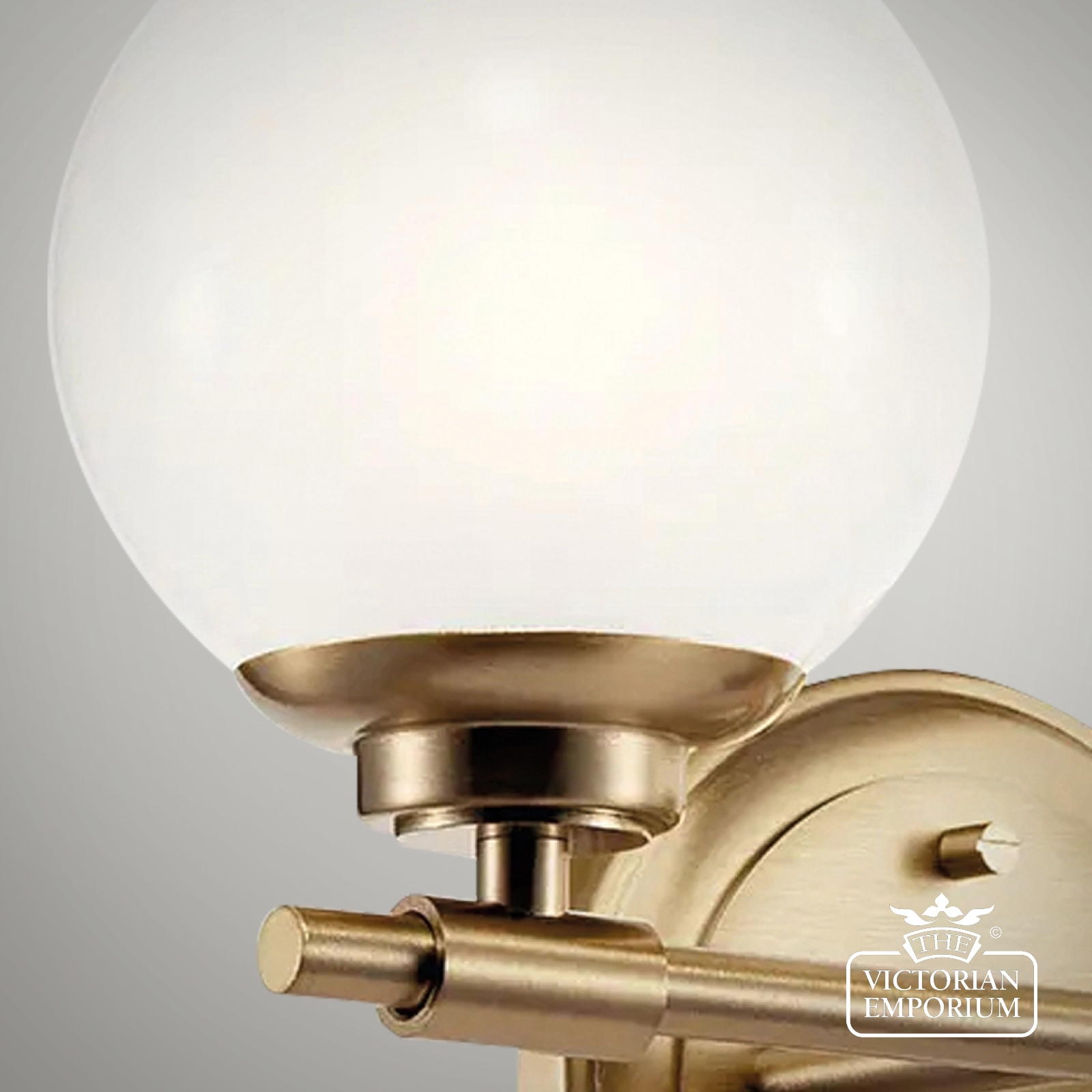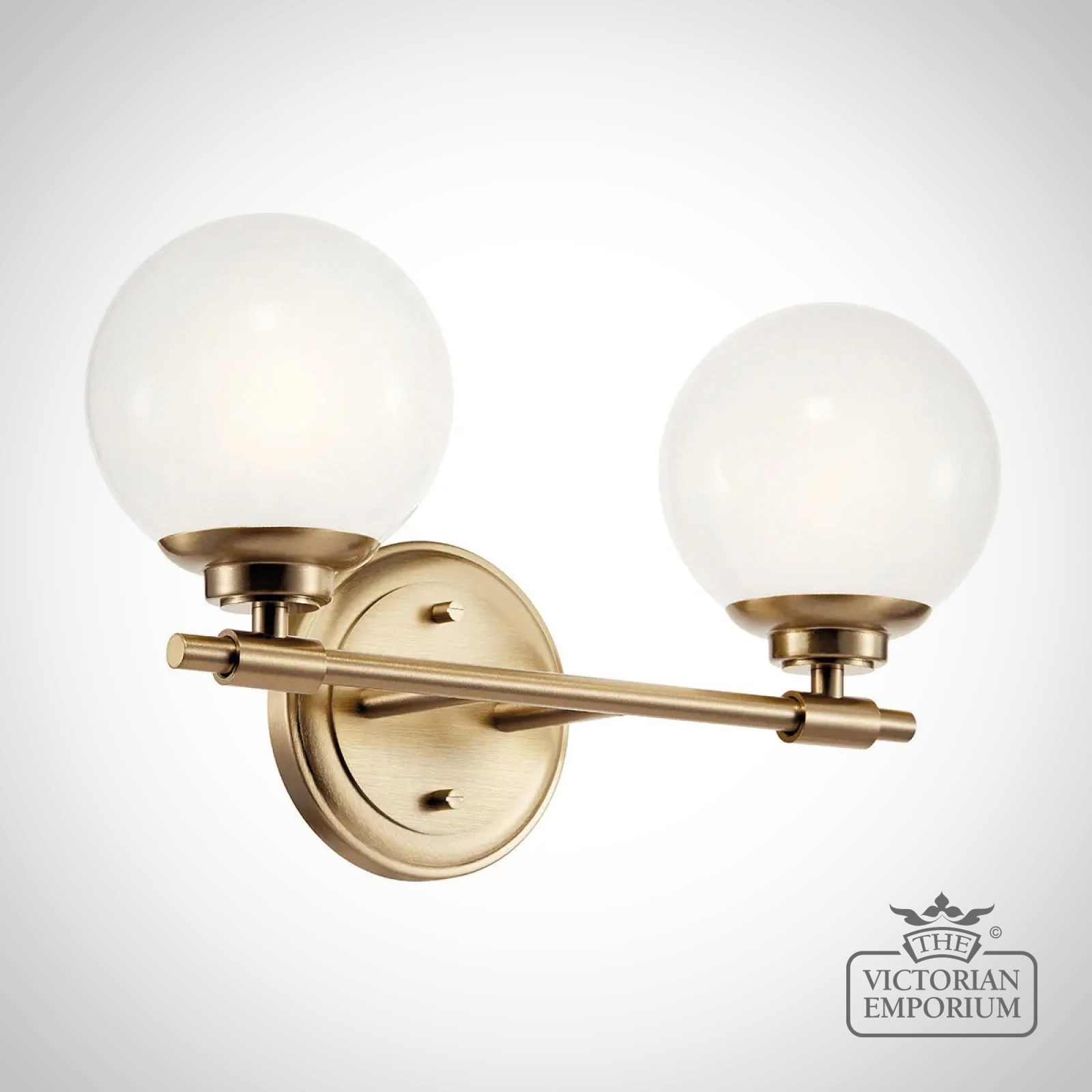 The Benno wall light features two classic globes in milky white opal glass and can be mounted facing up or down. Clean details highlight its mixed elegant finishes. IP44 rated for bathrooms.