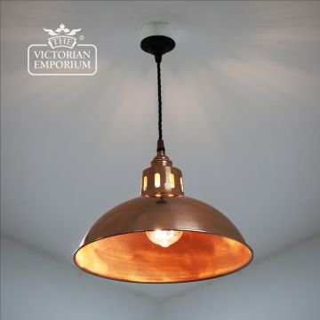 The Berlin Vintage Pendant Light is perfect to providing down lighting for seating areas, a kitchen table or in a lobby and is in a beautiful copper finish.