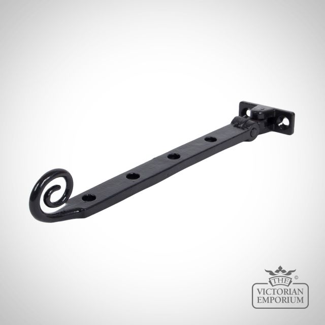 The monkeytail style fit really well into a Victorian property and is fashioned using modern casting. That gives it extra strength and detail compared to other cast products. It's finished with high quality black powder coating. It complements the night venting fasteners and can be retro fitted on any window. This stay has four positions for ventilation. It is supplied with two pins and all fixing screws.