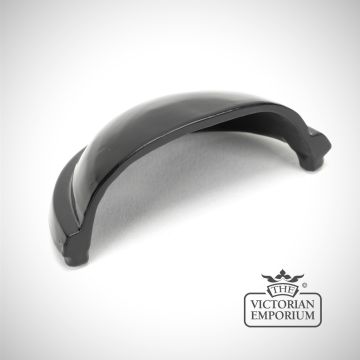 This is a high quality black drawer pull with a sheen in a smooth design which really complements lighter coloured wood or painted cupboards or furniture.