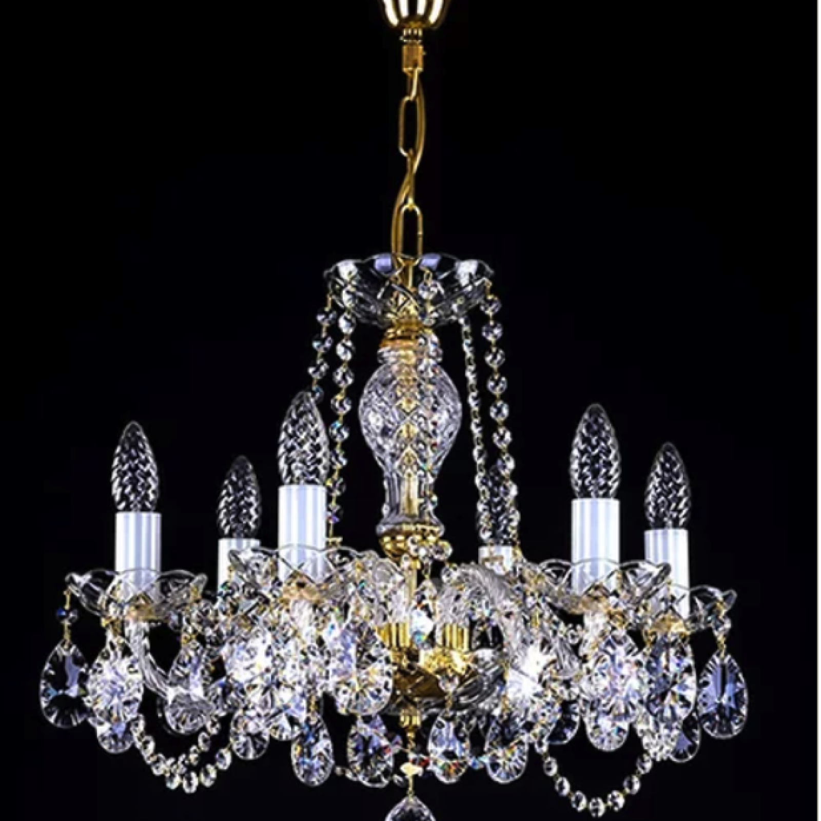 Bohemian Crystal 6 Arm Gold/Nickel Chandelier With Rope Twist Glass Arms