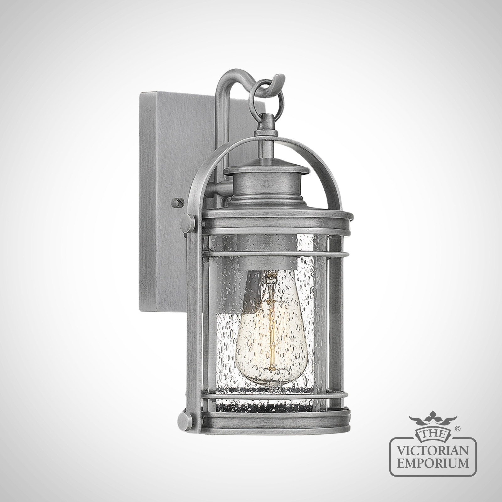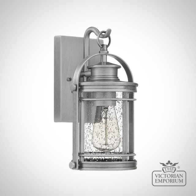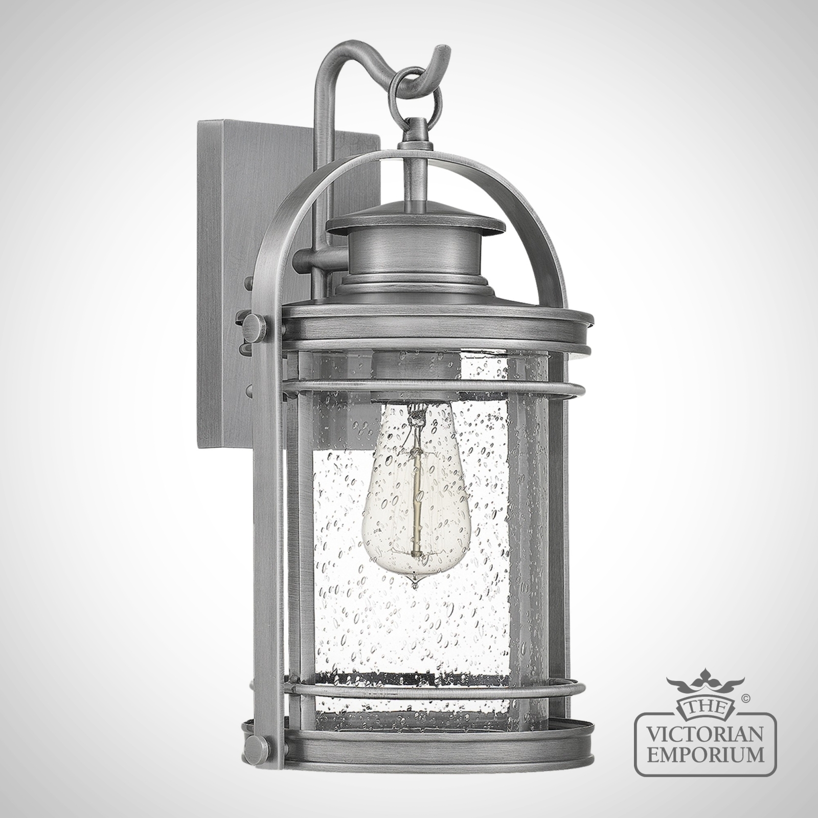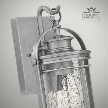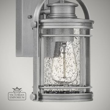 This light features a strong construction with industrial-grade aluminium. Vintage style bulbs are recommended for this fitting. A really attractive range of outdoor lights incorporating wall lights in two sizes, pendestal lanterns, and ceiling lights.