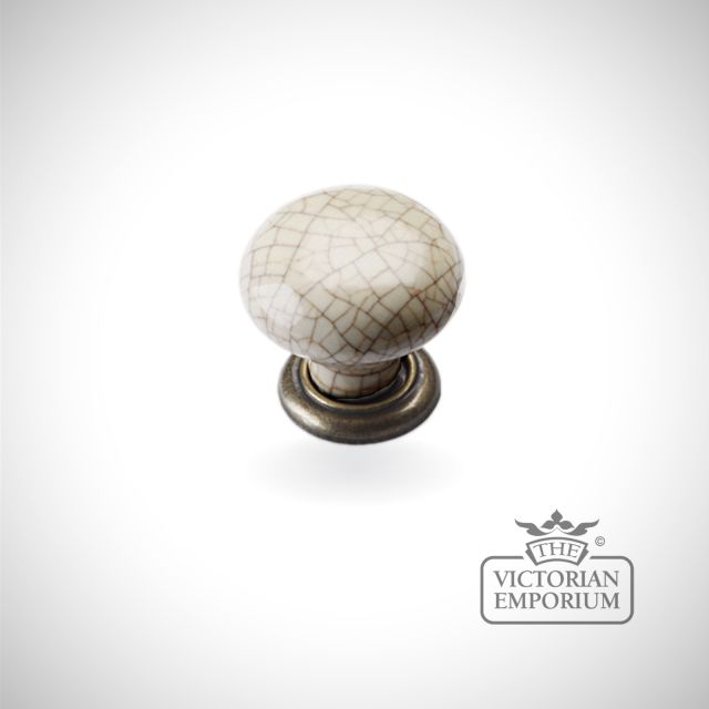 Iron and ceramic crackle glazed knob. Shown with matching t knob and pull handle