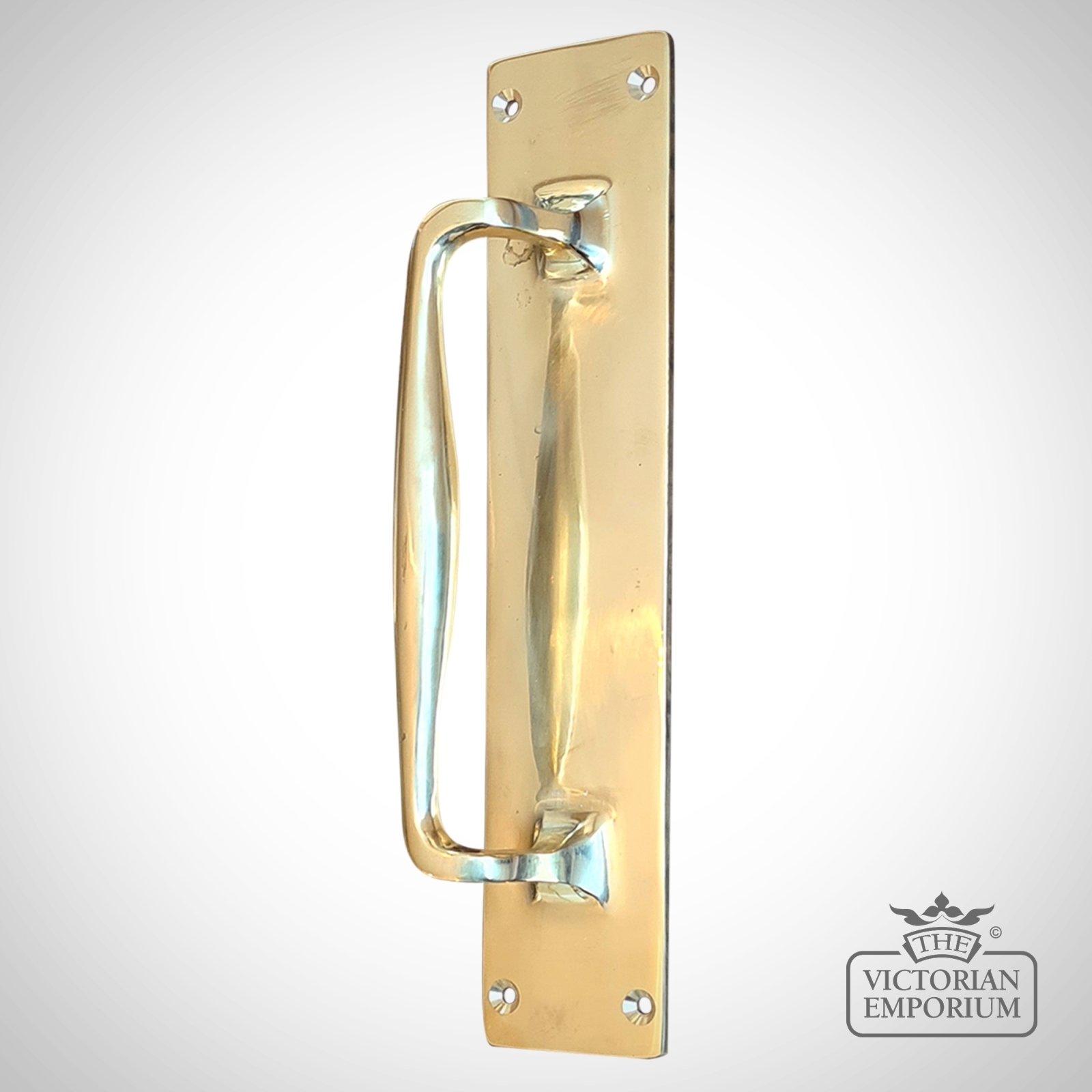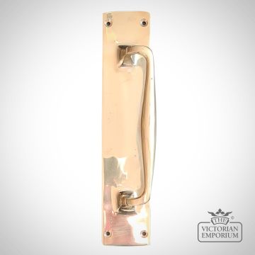 Really traditional Typical Pub Door Pull Handle with an integral Plate in Solid Brass
