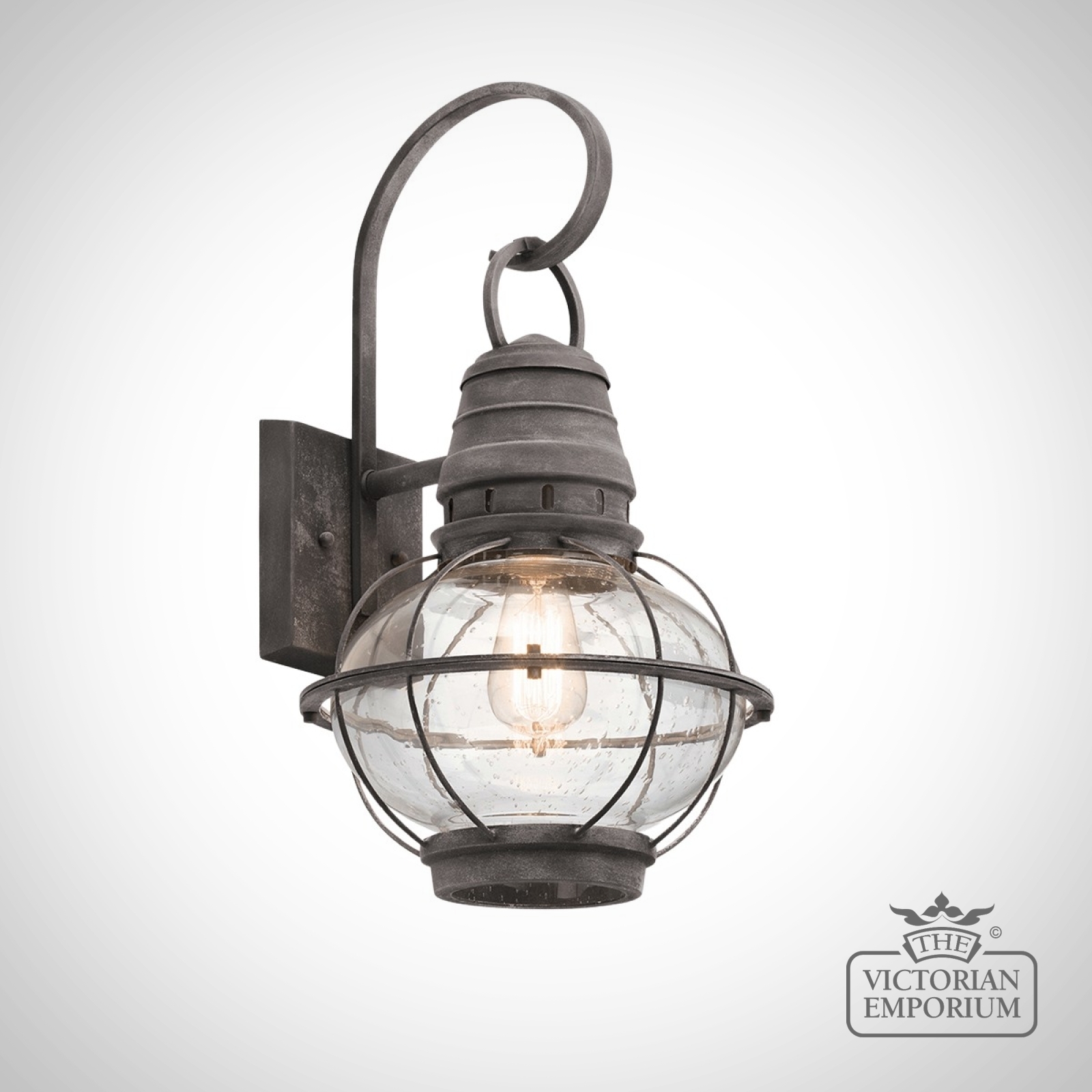 The theme for this range is nautical and railway lighting with a weathered zinc finish and seeded glass for the vintage look