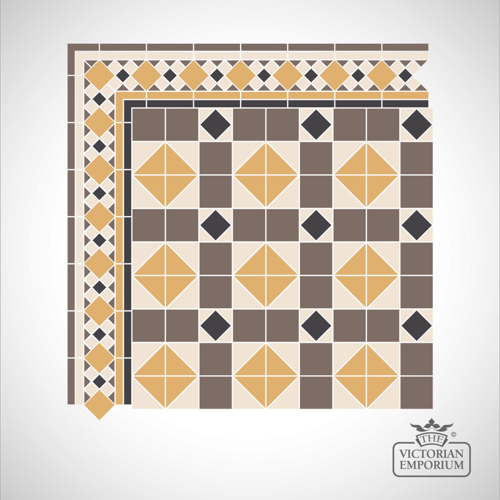 Victorian mosaic centre pattern tiles in a Victorian colour palette of black, white, yellow and brown - sold by the sheet.