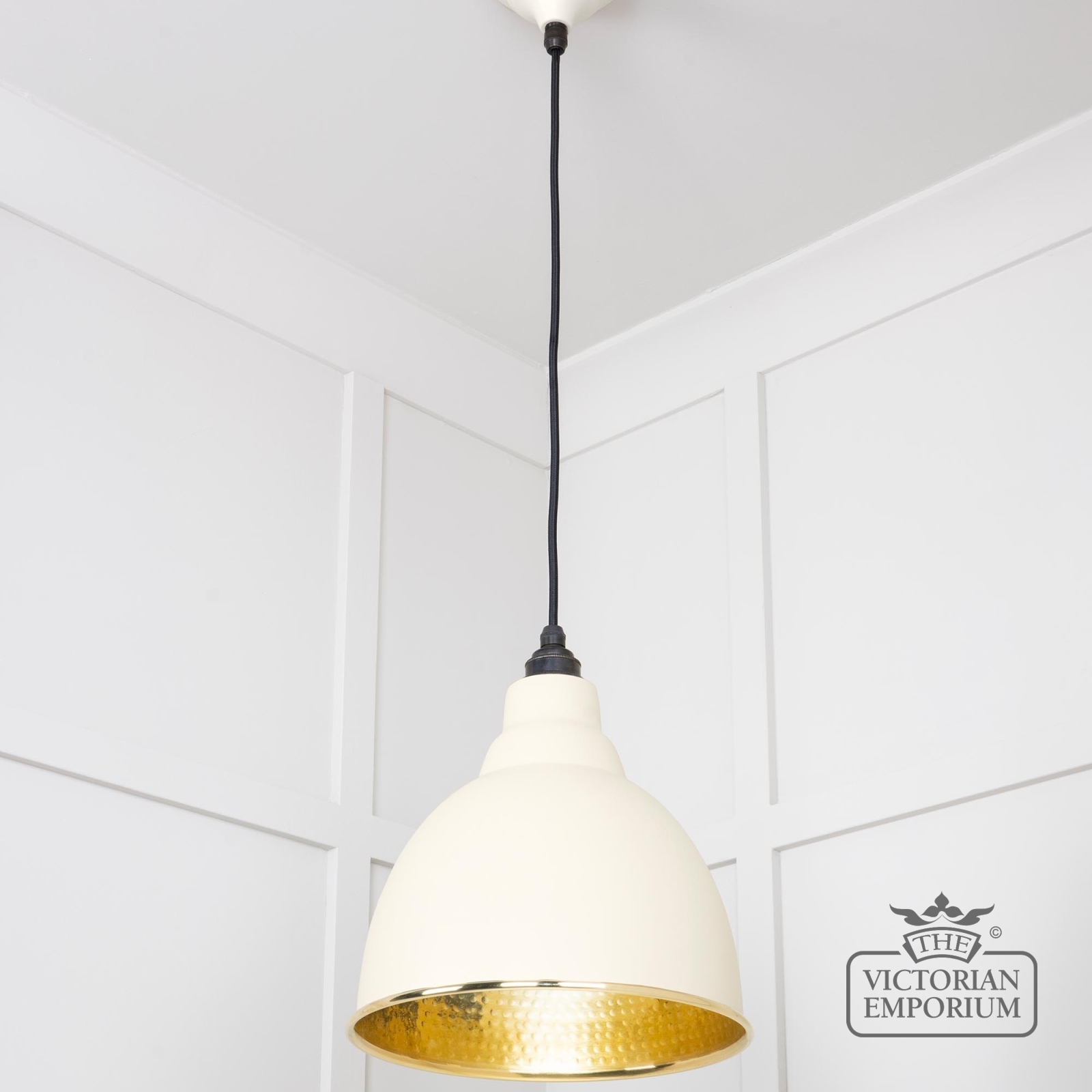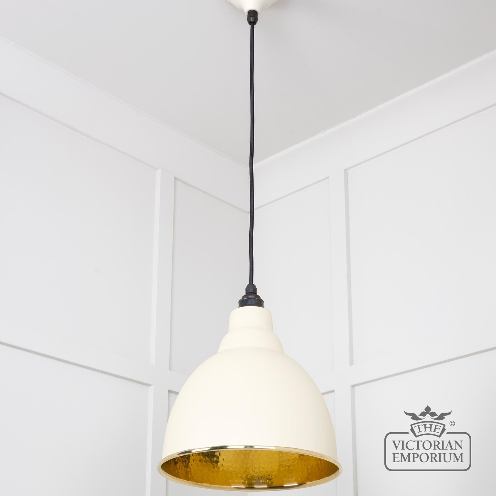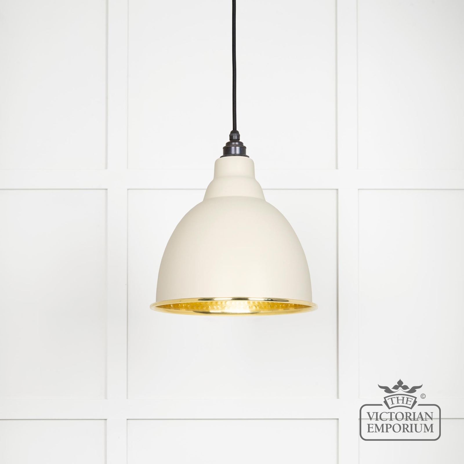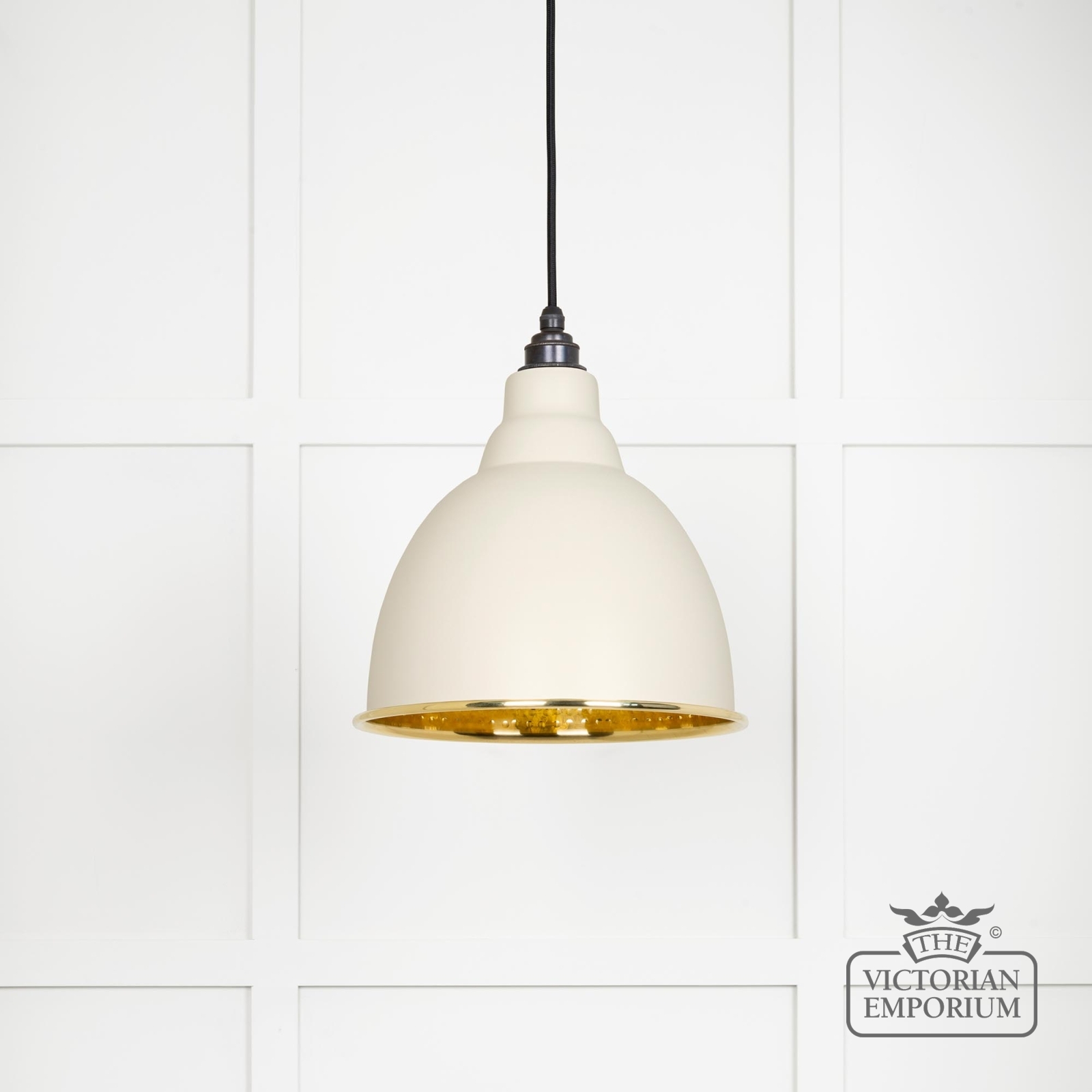 Brindle pendant light in Teasel with hammered brass interior