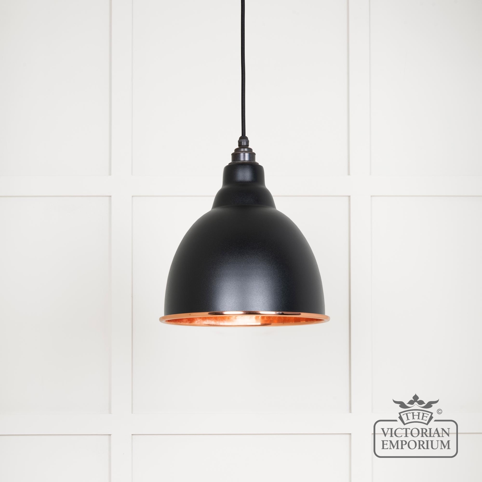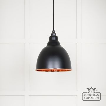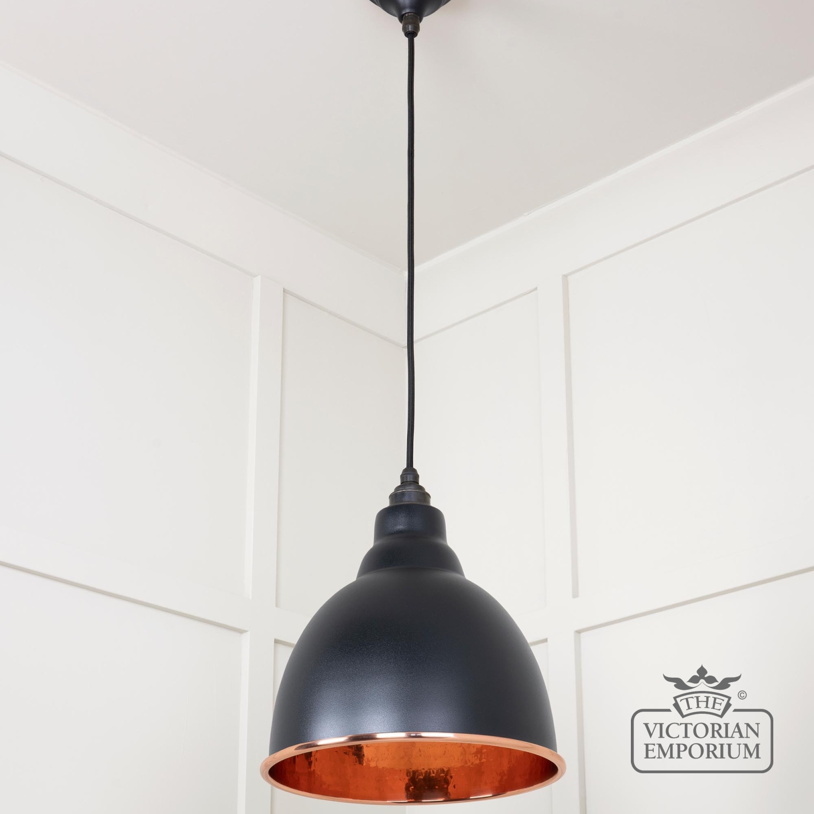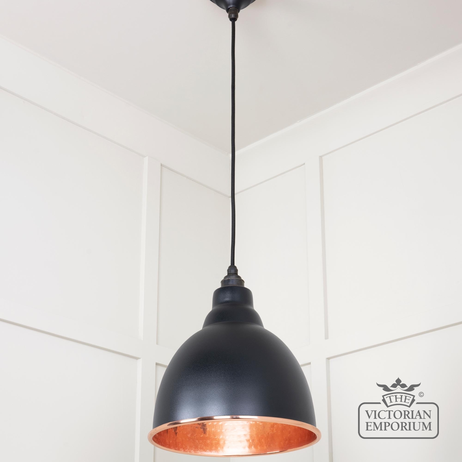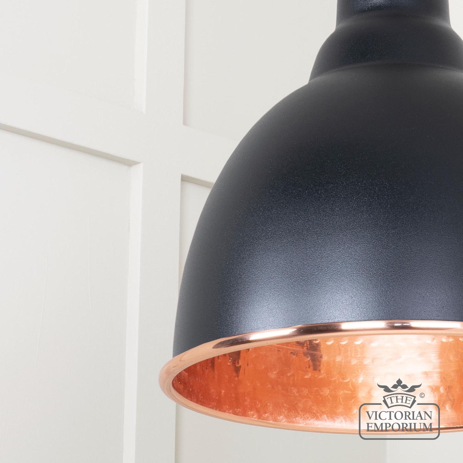 Brindle Pendant Light in Black with Hammered Copper Interior