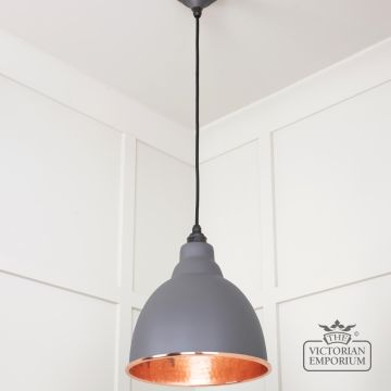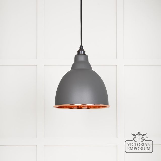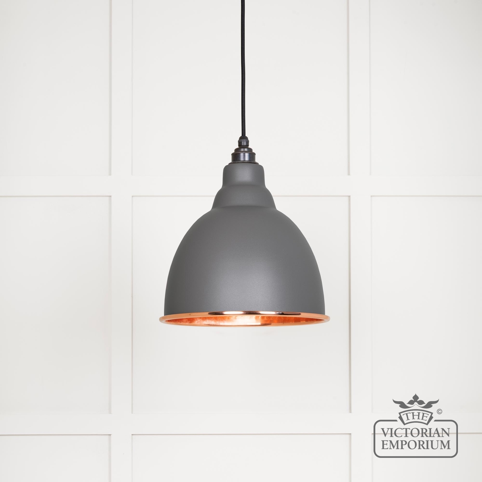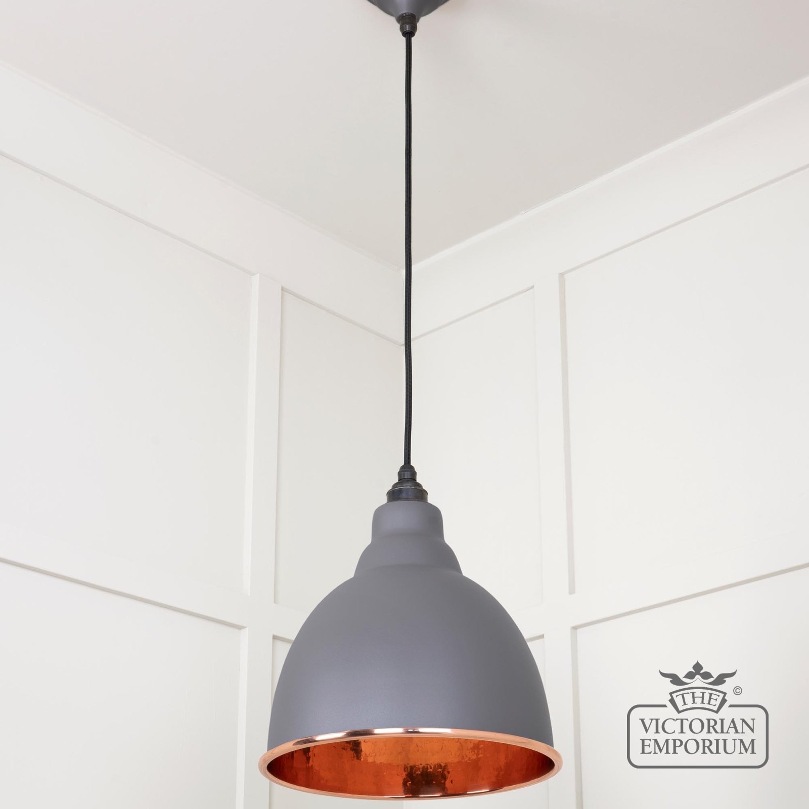 Brindle Pendant Light in Bluff with Hammered Copper Interior