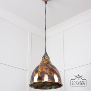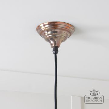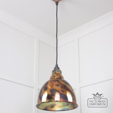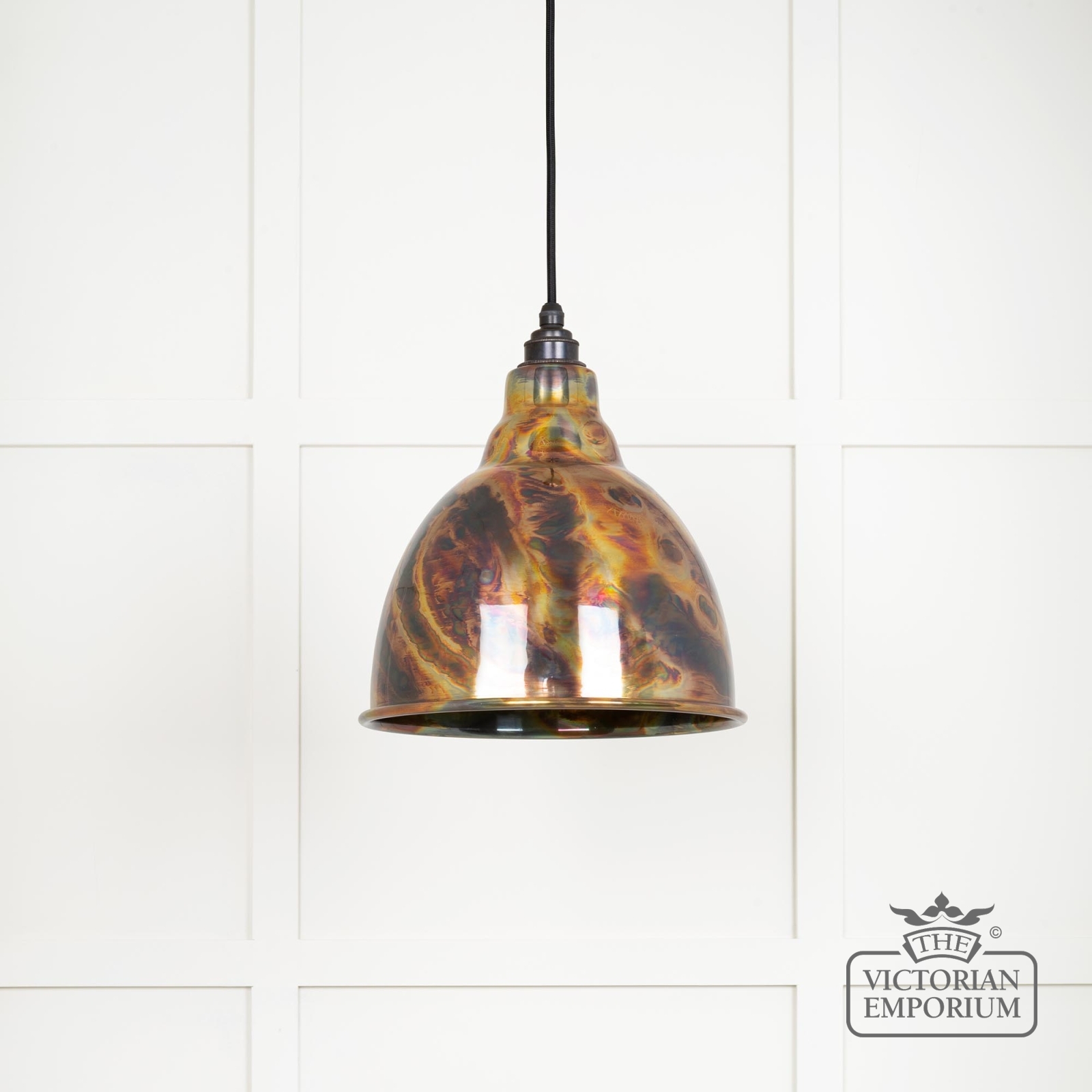 This pendant is hand spun from solid brass and finished in burnished with a black fabric cable