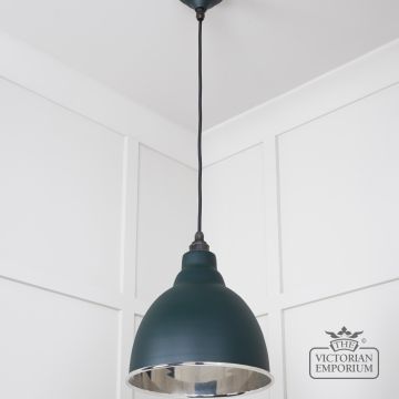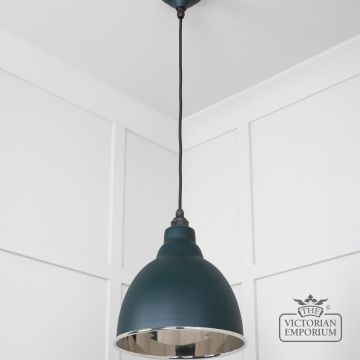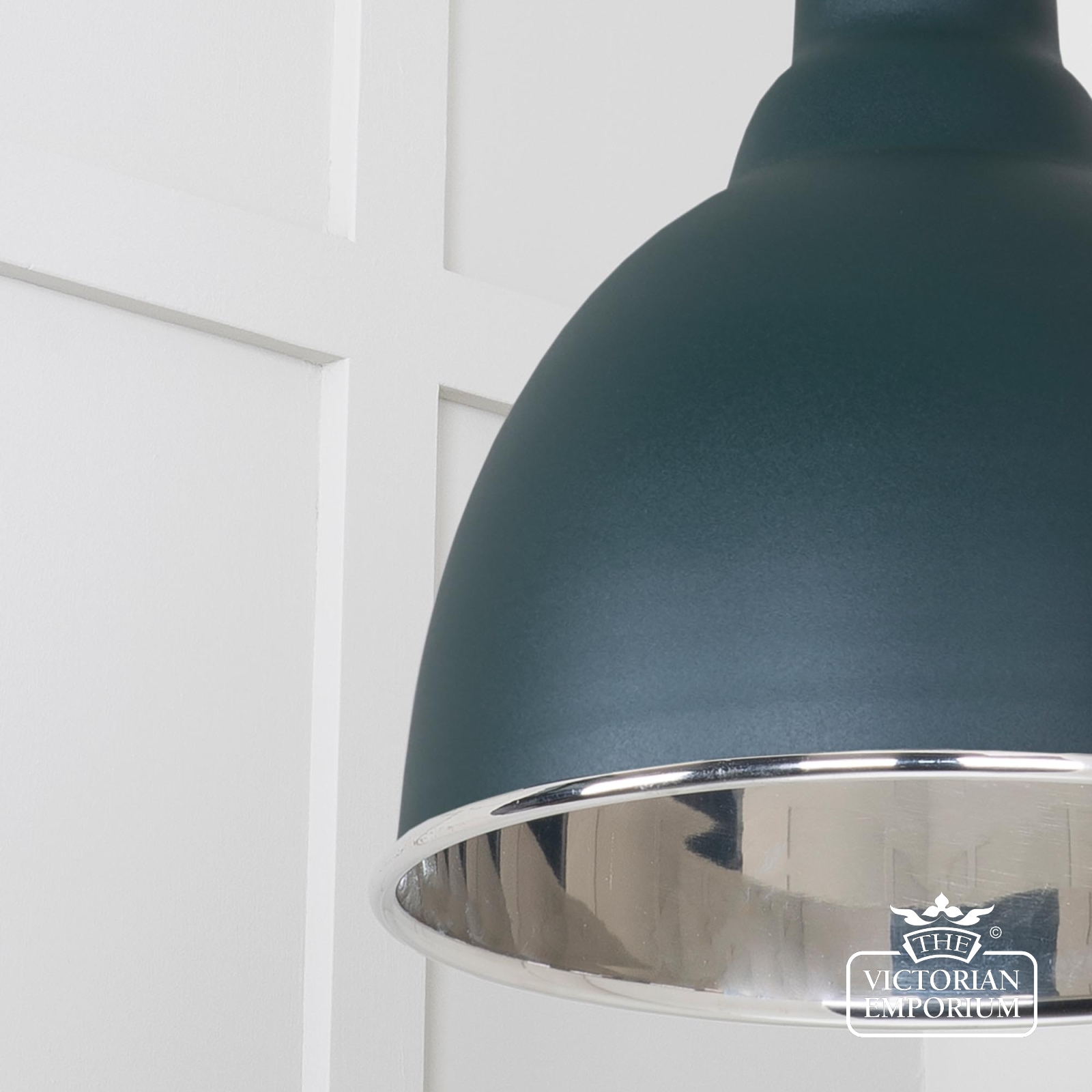 This pendant is hand spun from solid brass and finished in smooth nickel with a black fabric cable - looks great in a group. This one has a smooth nickel interior and painted Dingle exterior