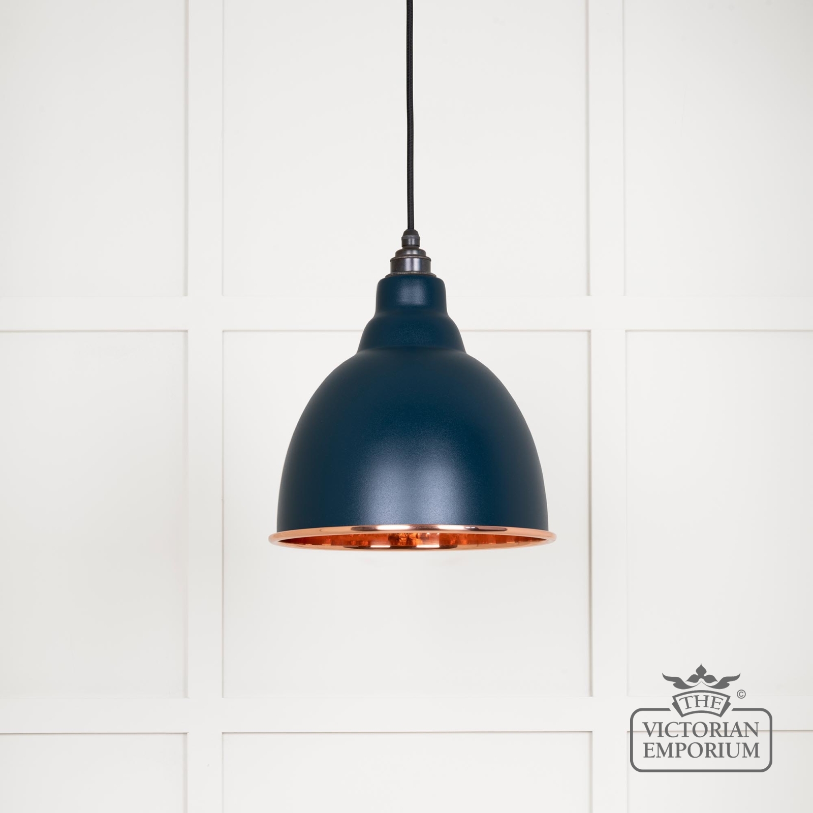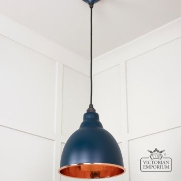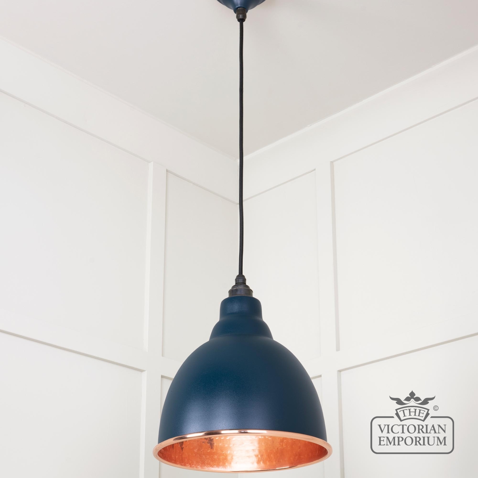 Brindle Pendant Light in Dusk with Hammered Copper Interior