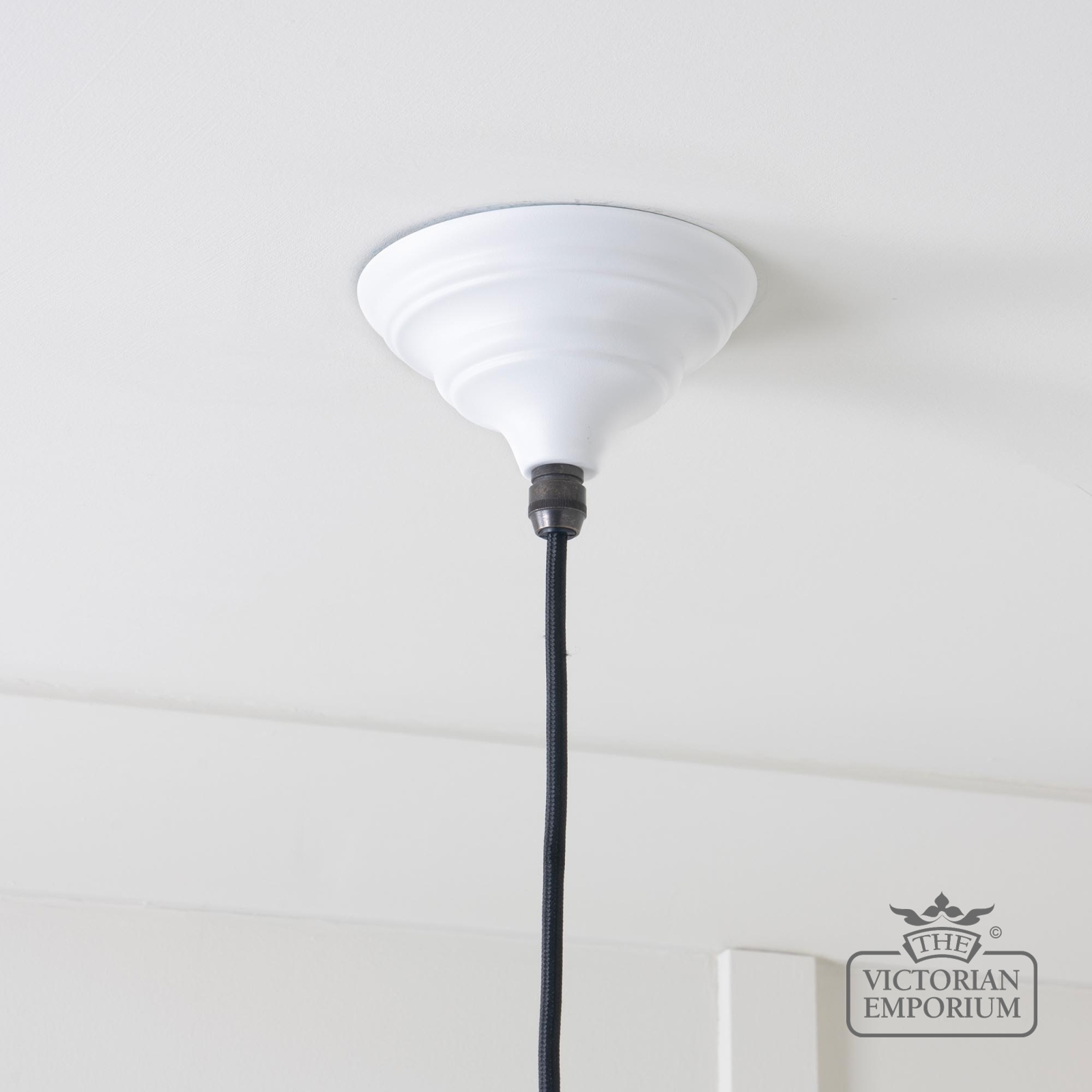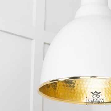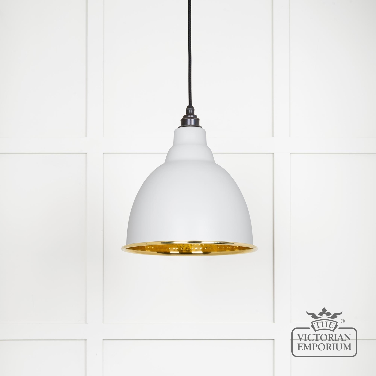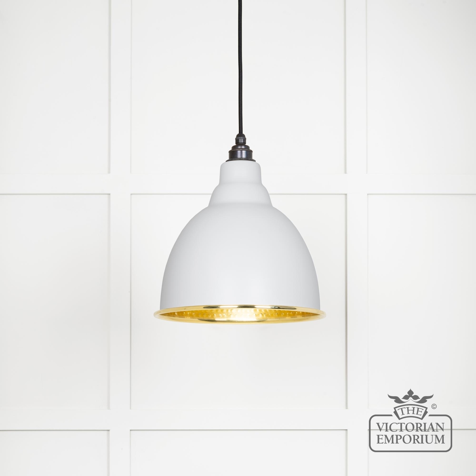This pendant is hand spun from solid brass and finished in hammered brass and Flock painted exterior with a black fabric cable. This one has a beautiful hammered brass interior and a Flock exterior