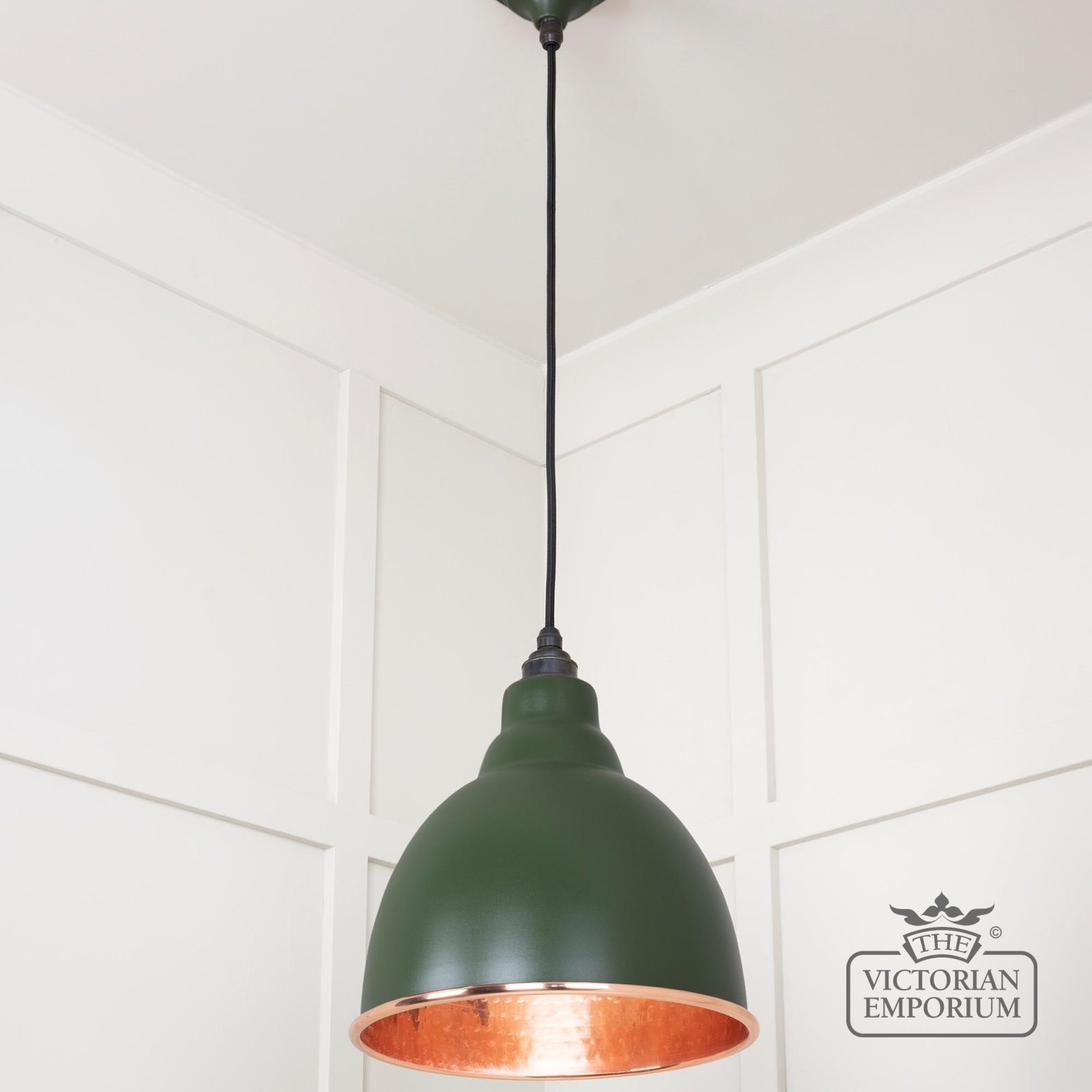 Brindle Pendant Light in Heath with Hammered Copper Interior