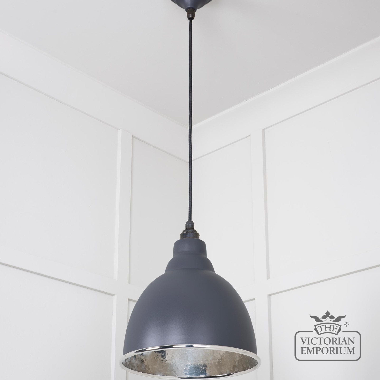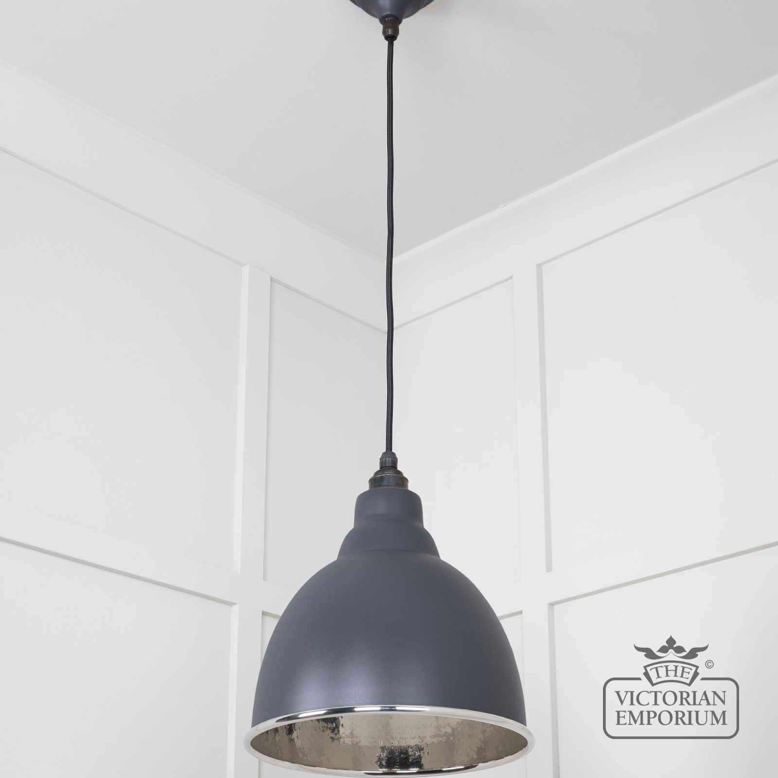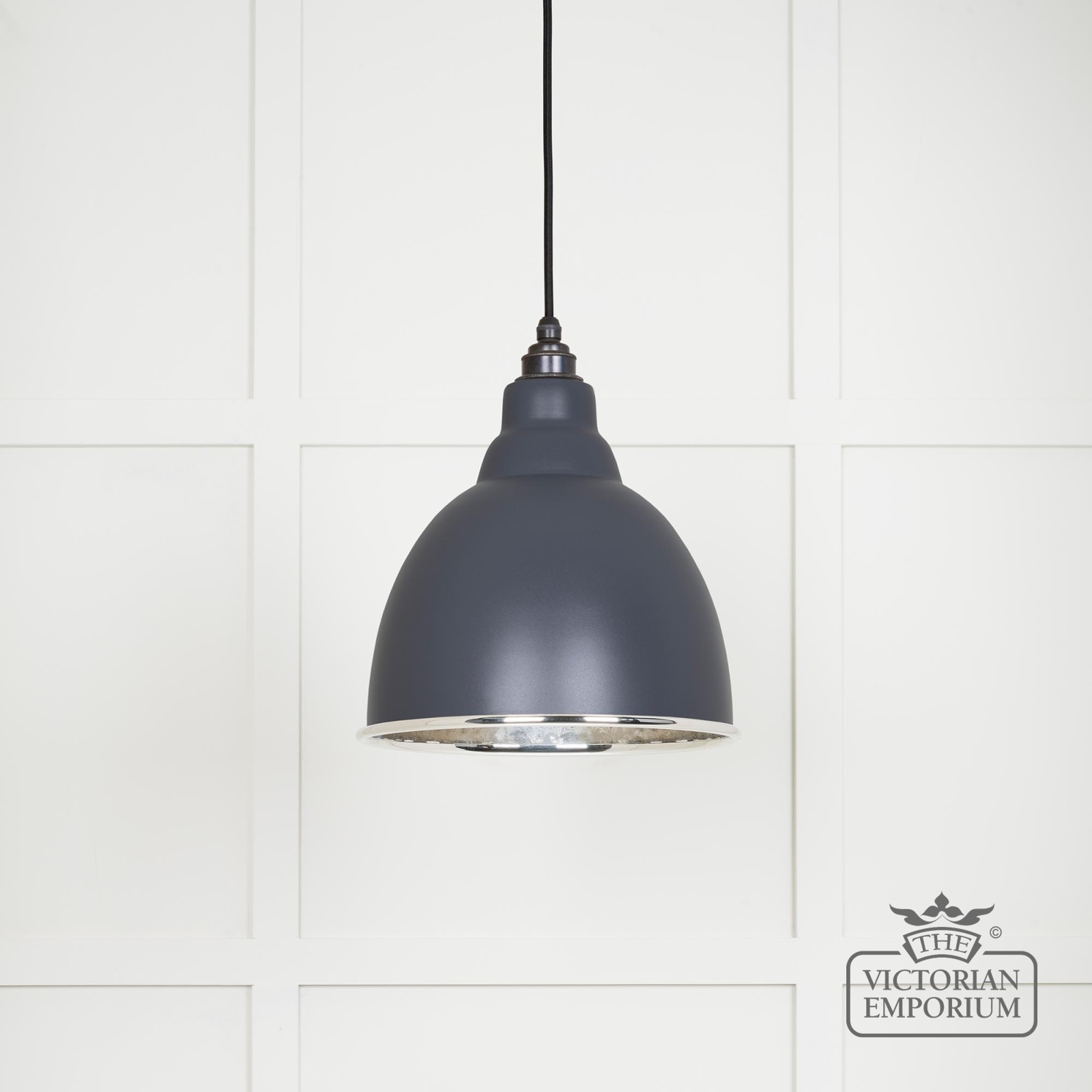 Brindle Pendant Light in Slate with Hammered Nickel Interior