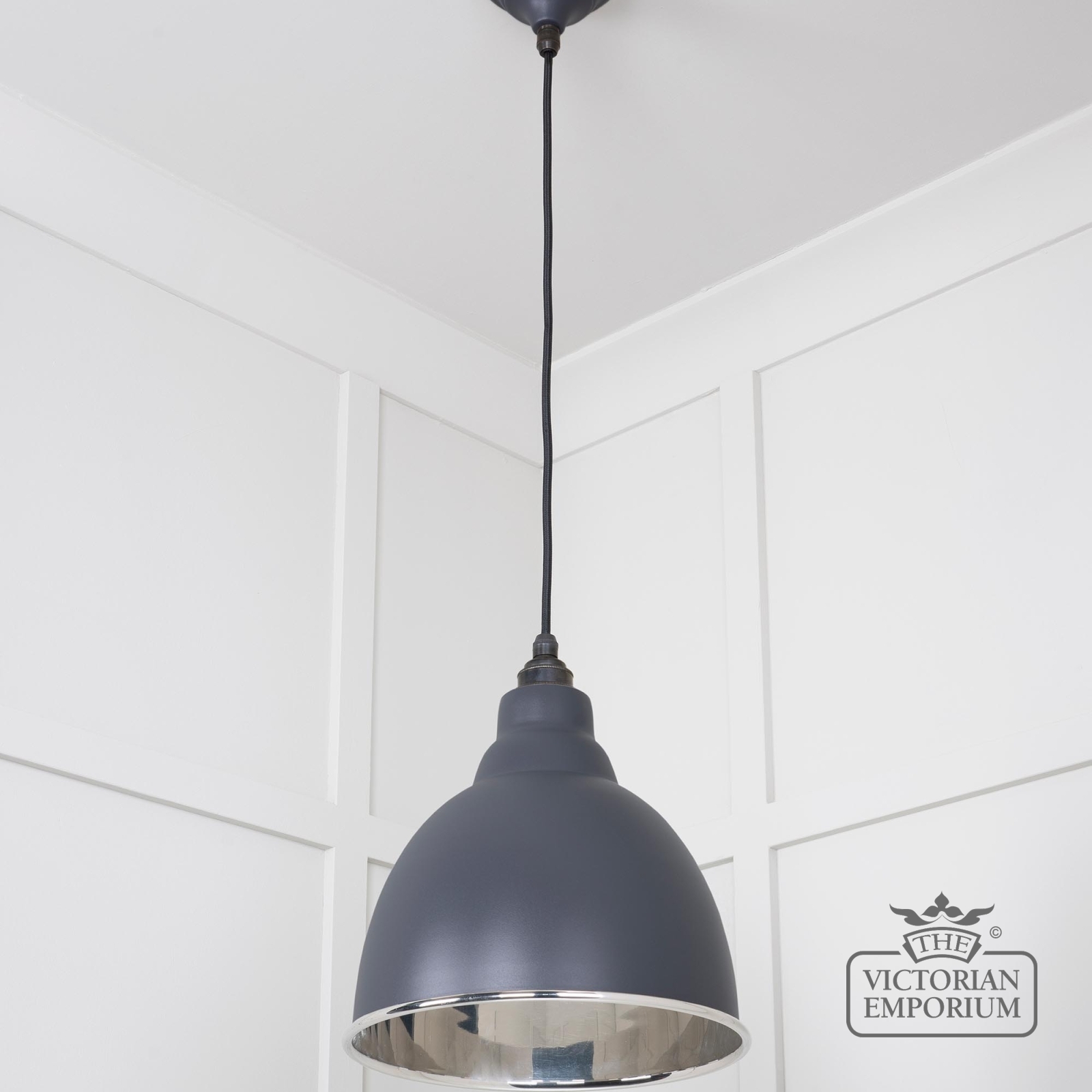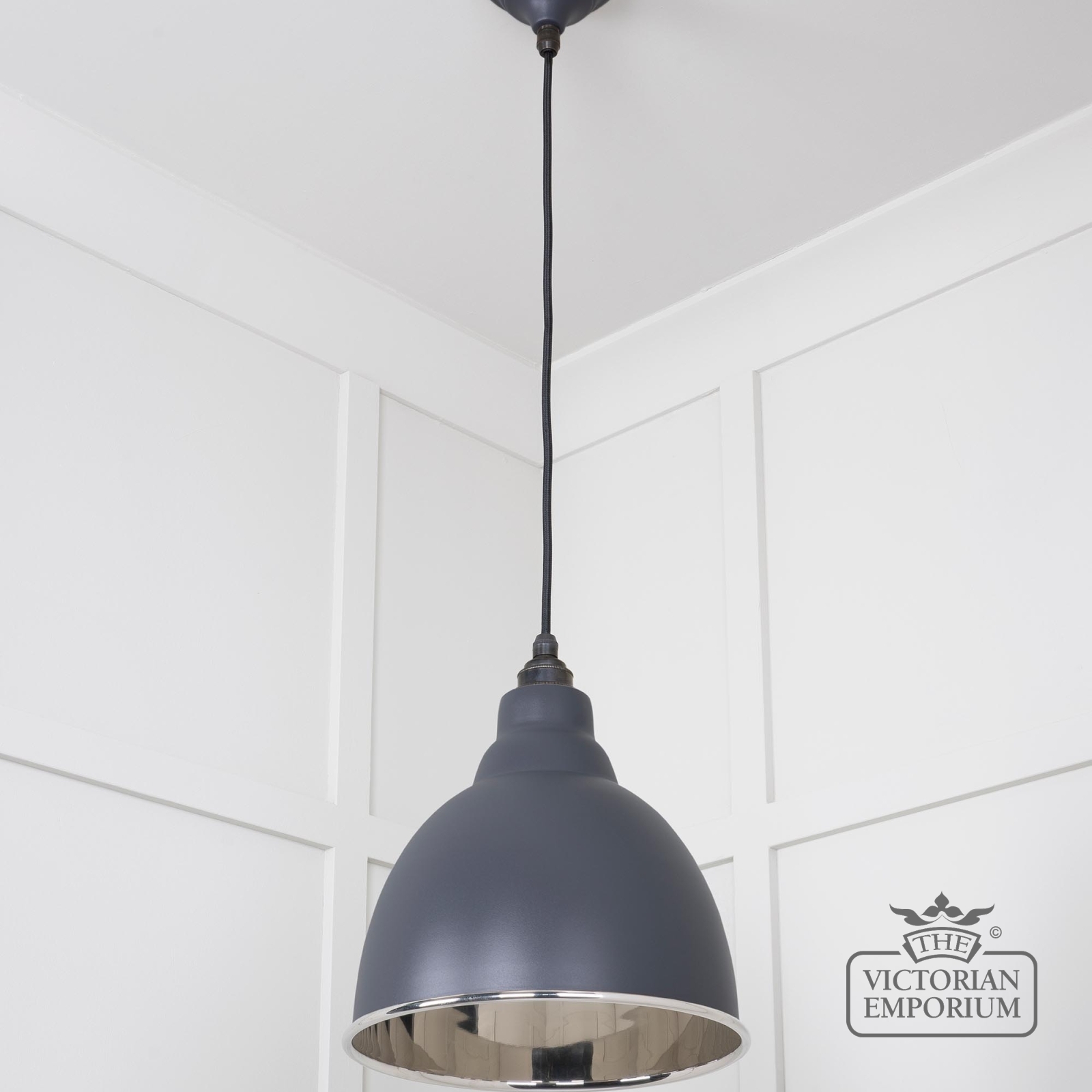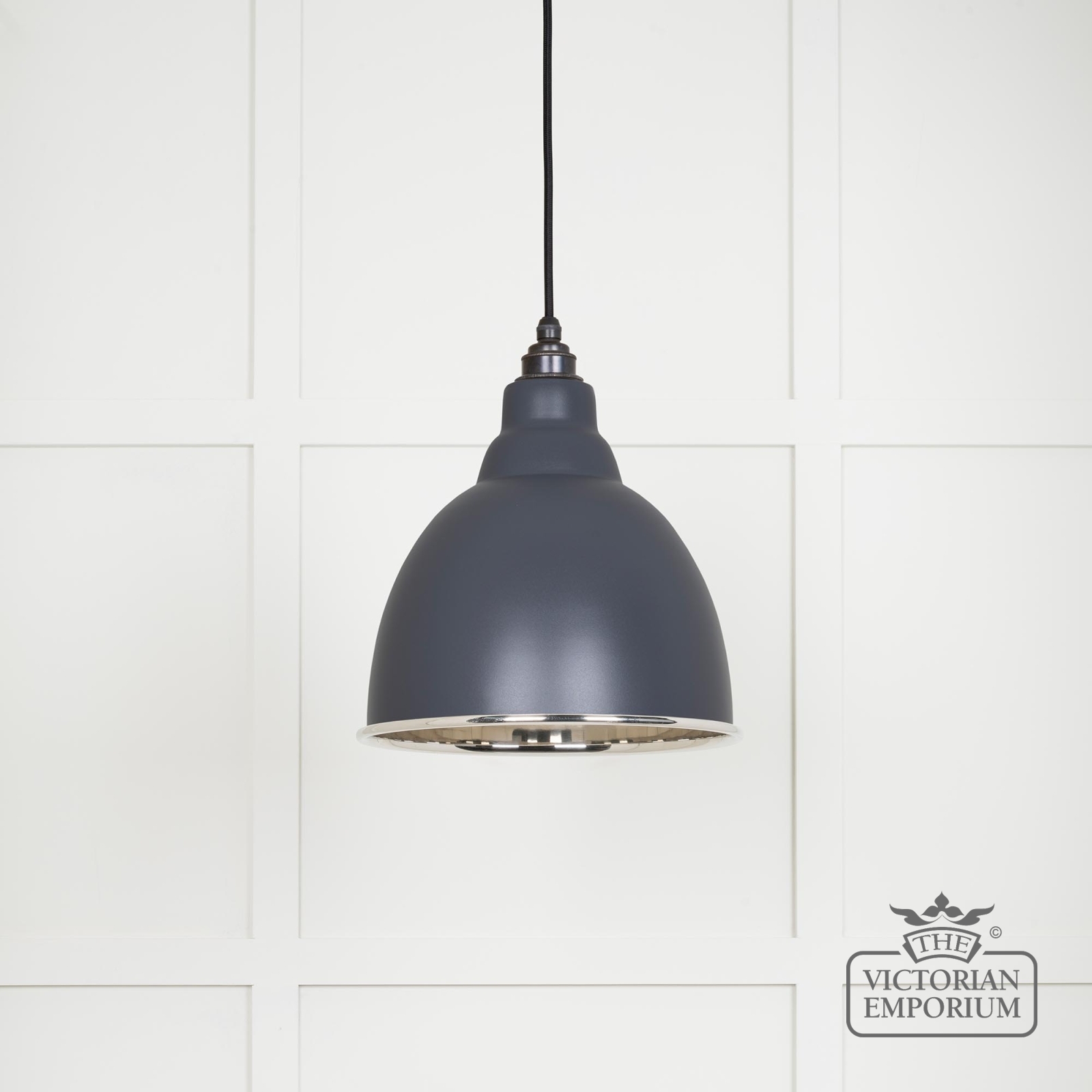 This stunning Slate and smooth nickel Brindle pendant light is versatile and can be hung at different levels to brighten certain areas within a room
