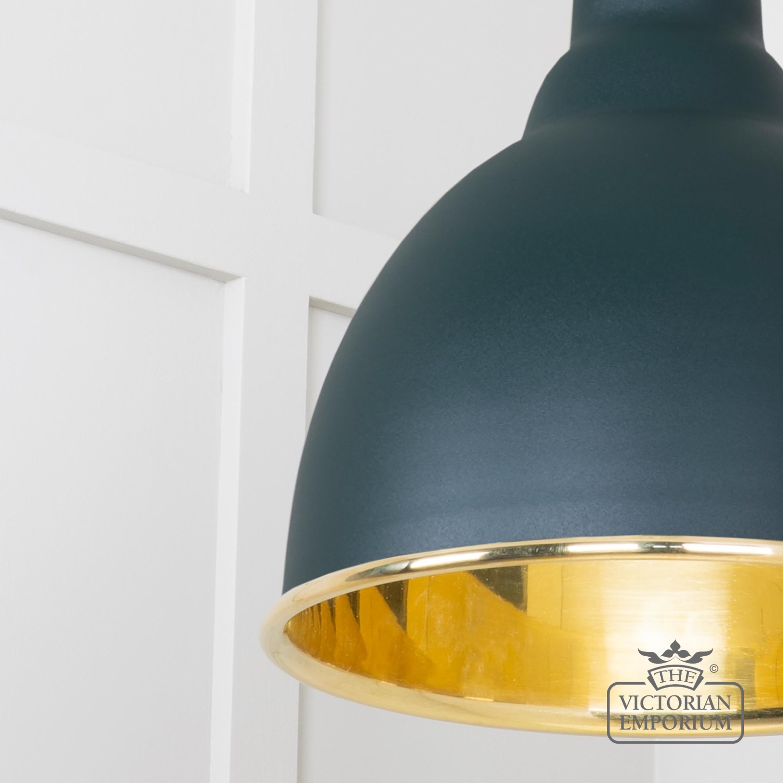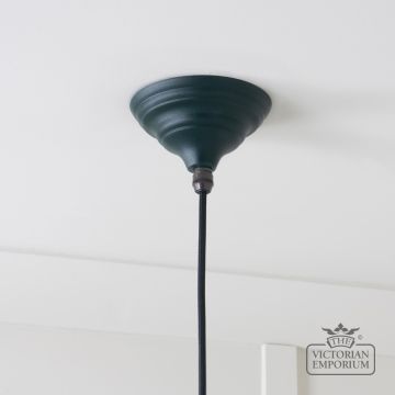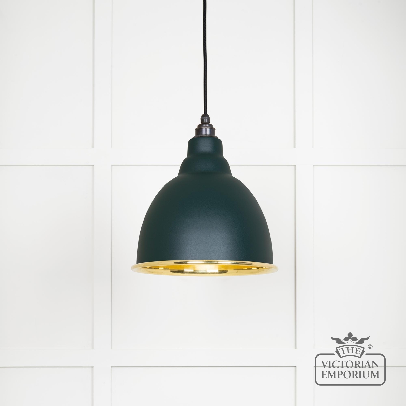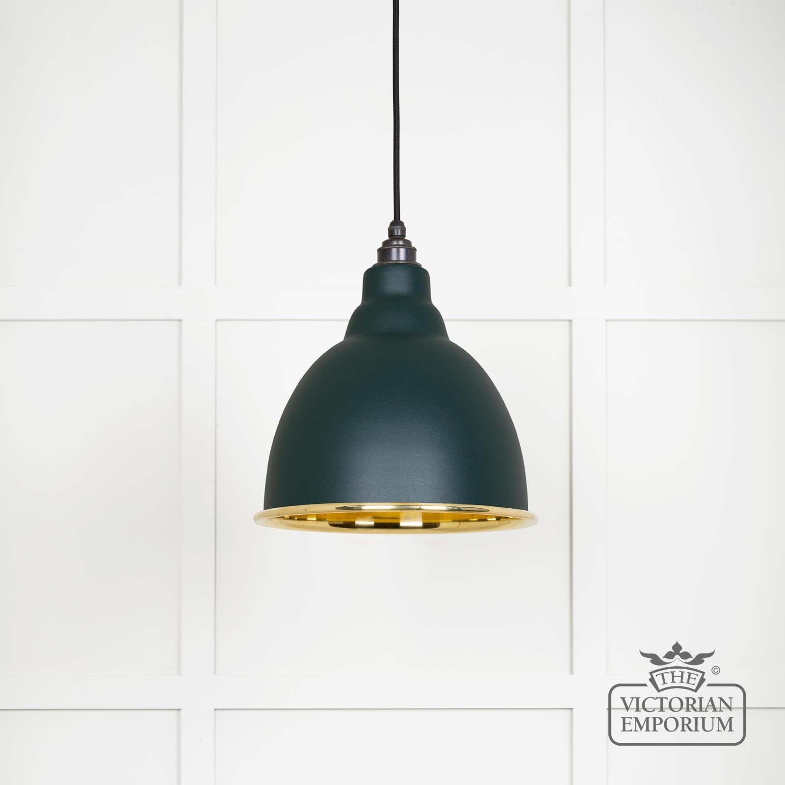 This pendant is hand spun from solid brass and finished in smooth brass with a black fabric cable. With a Dingle painted exterior.