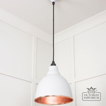 This pendant is hand spun from solid copper and finished in smooth copper with flock exterior with a black fabric cable. This one has a beautiful smooth copper interior and painted flock exterior