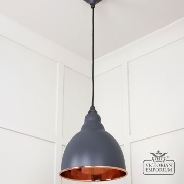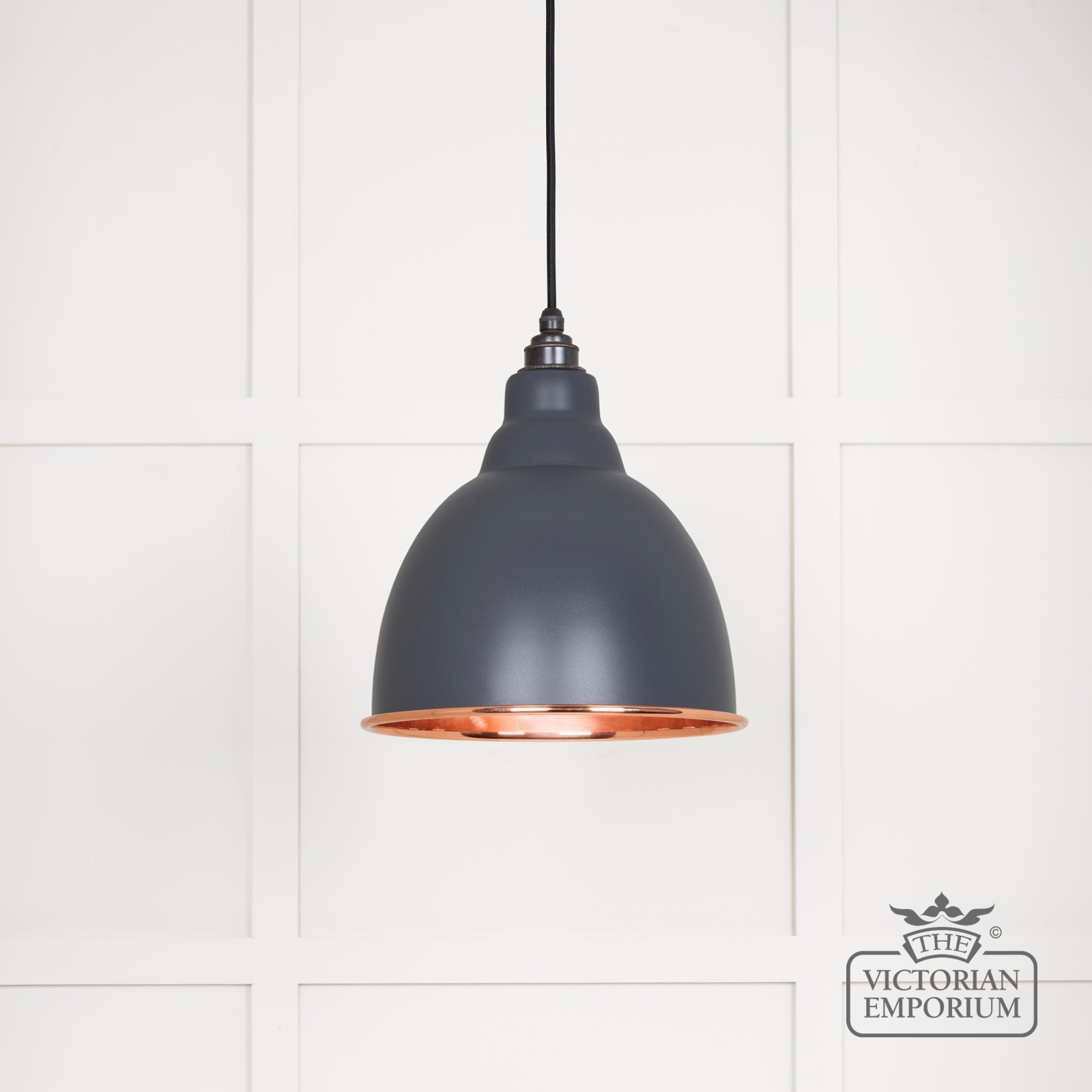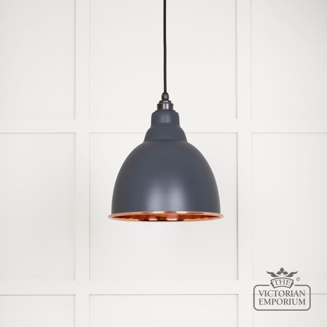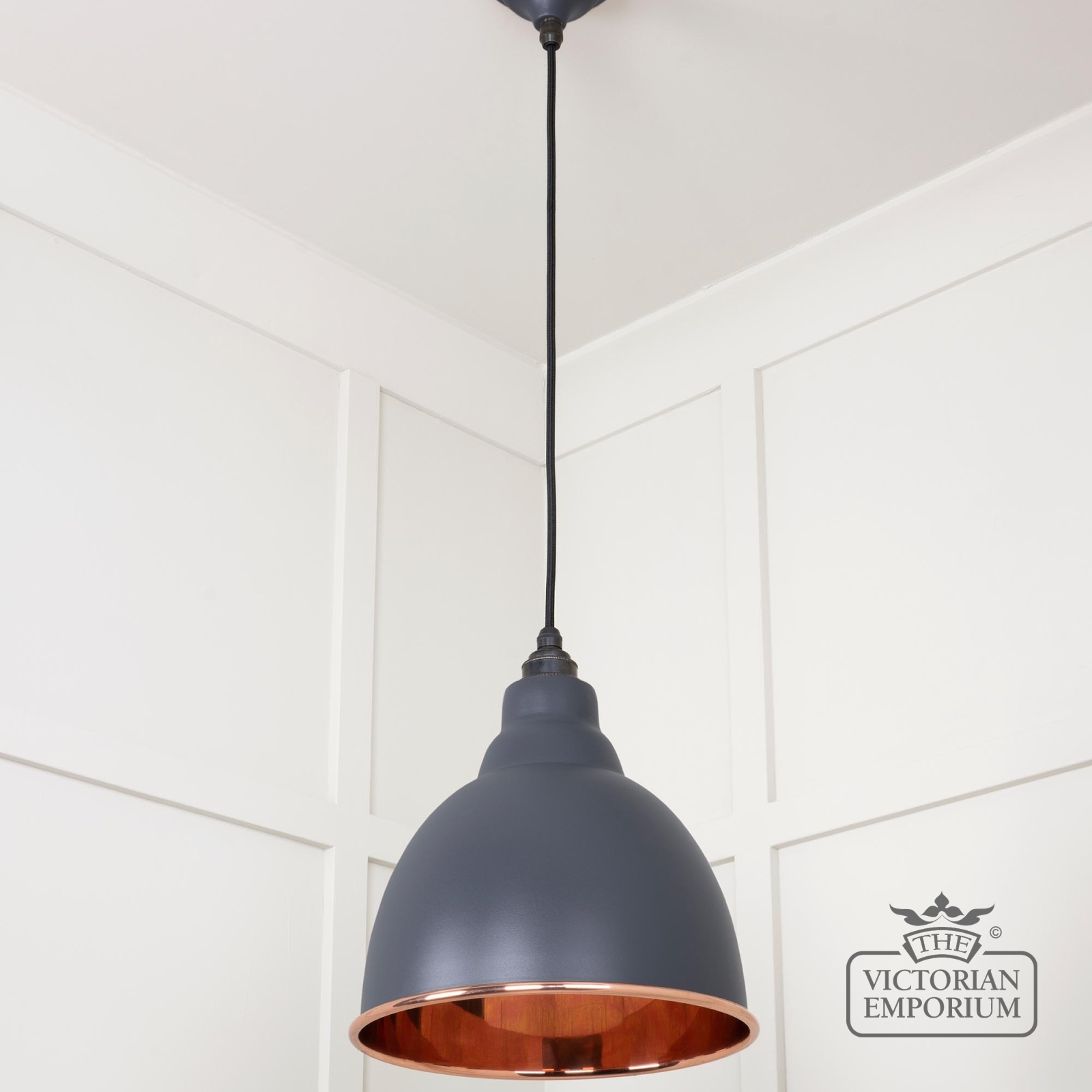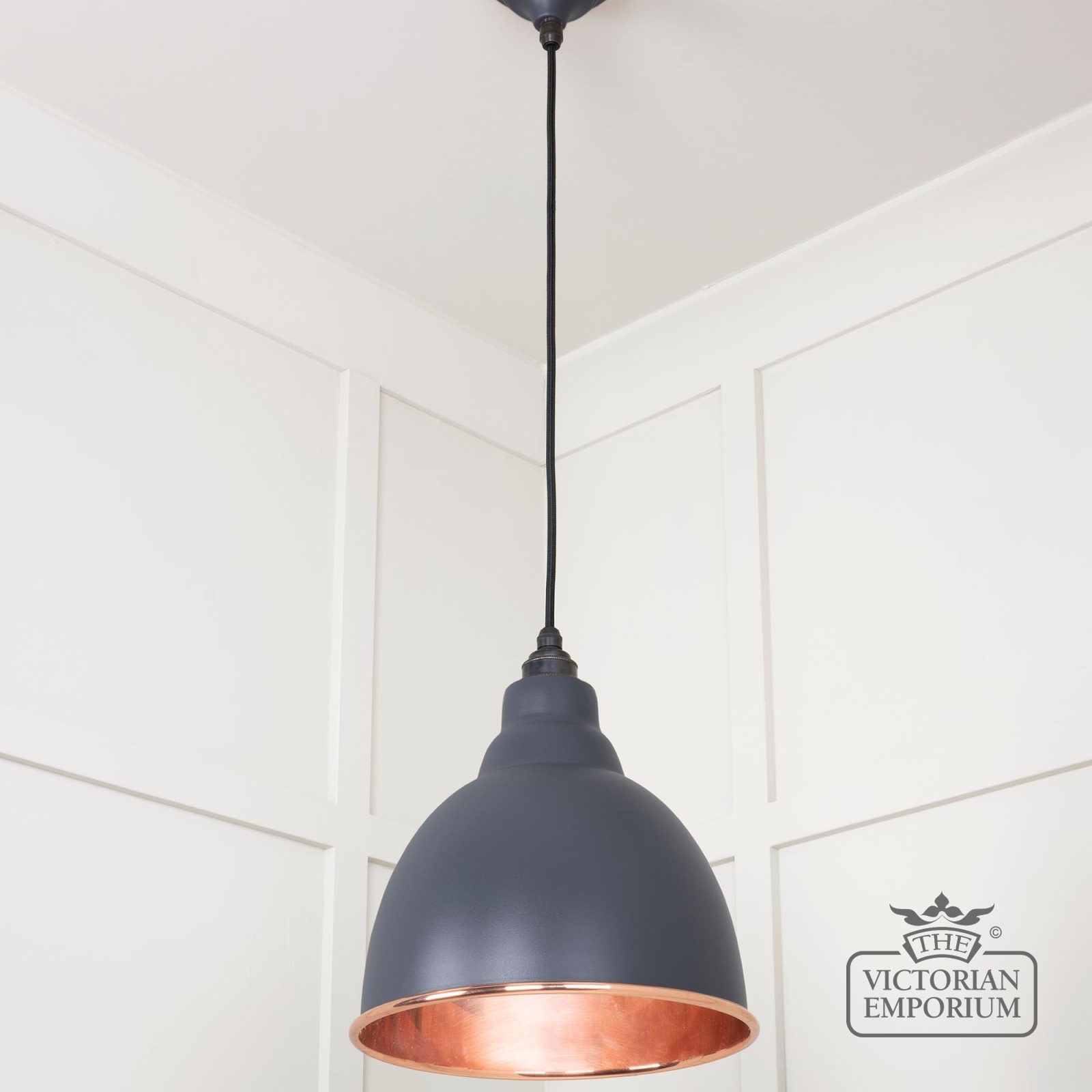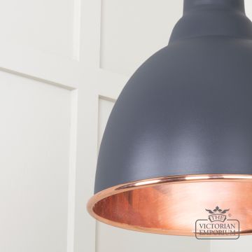 Brindle Pendant Light in Smooth Copper with Slate Exterior