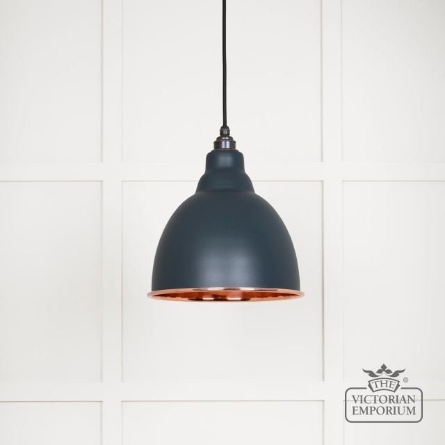 Brindle Pendant Light in Smooth Copper with Soot Exterior