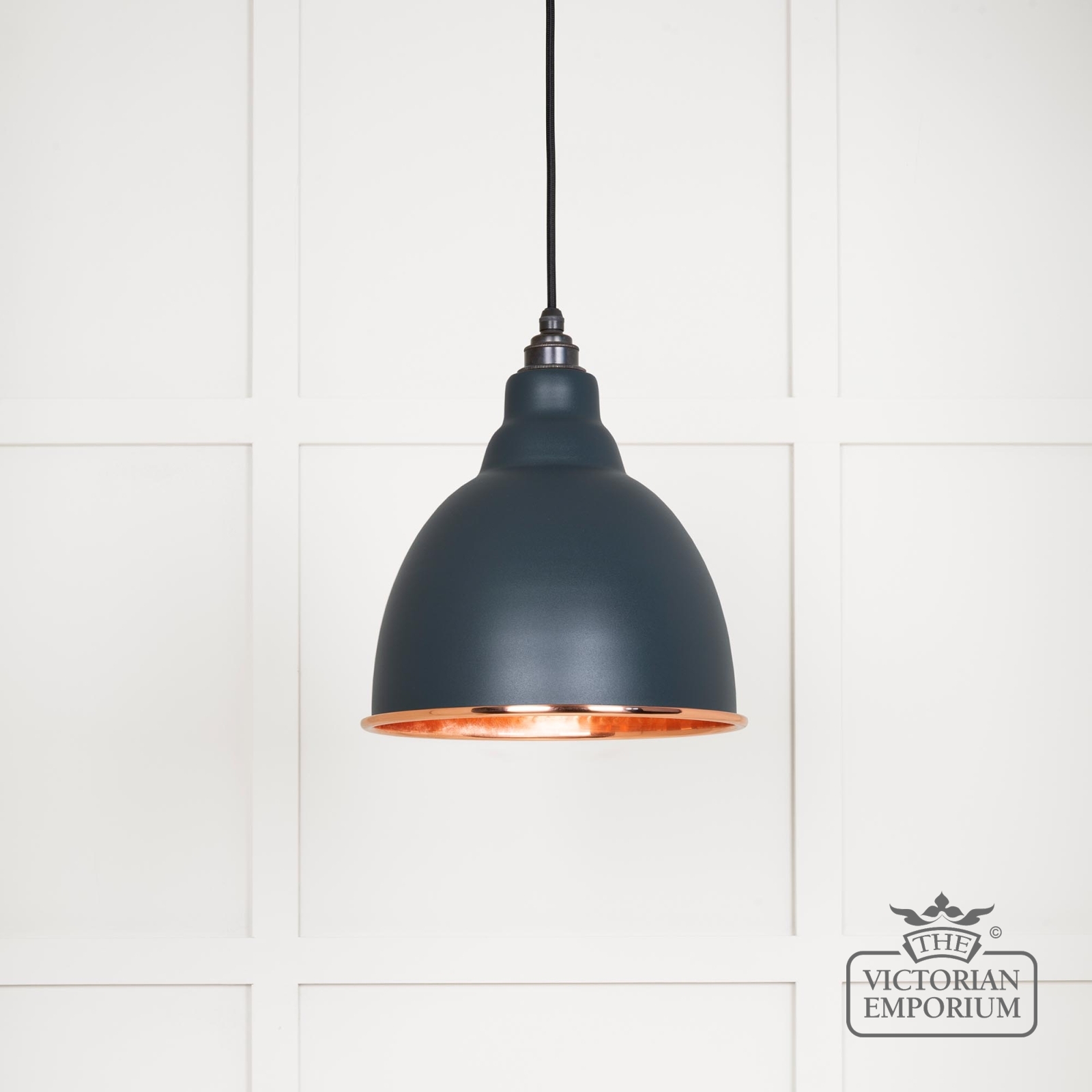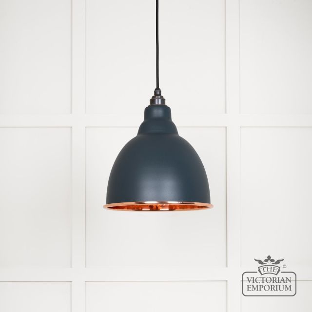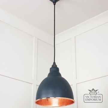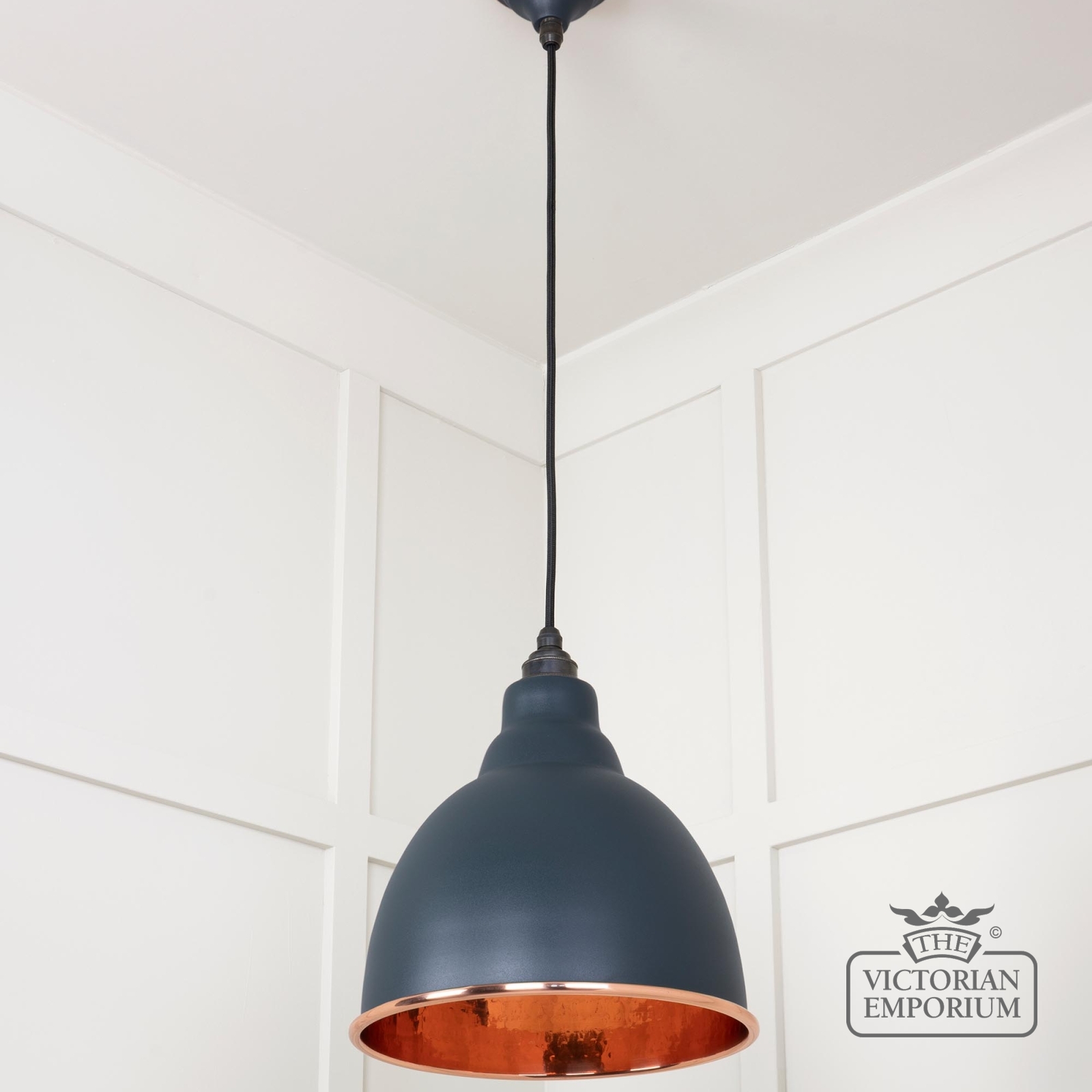Brindle Pendant Light in Soot with Hammered Copper Interior