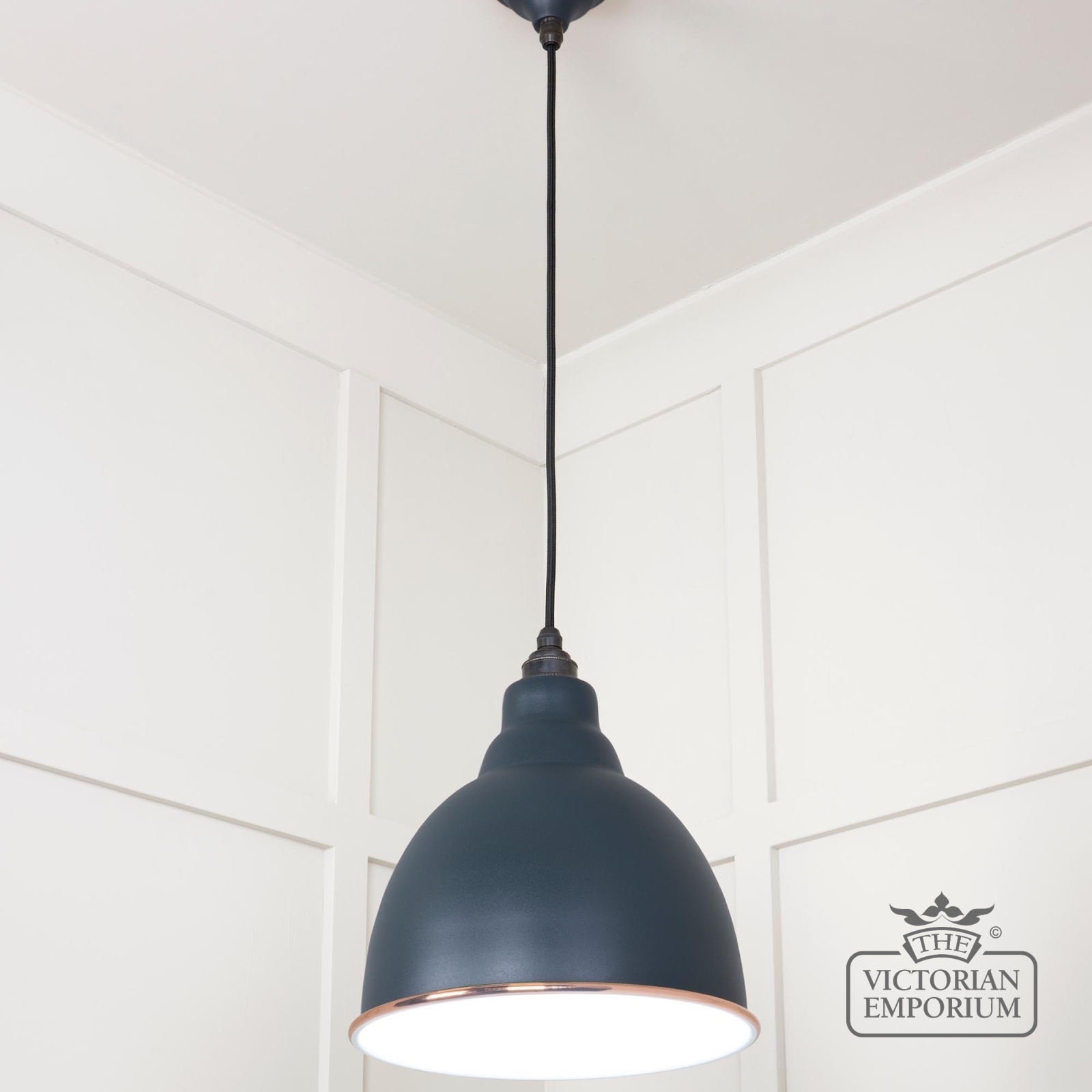 Brindle pendant light in Soot with white gloss interior