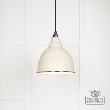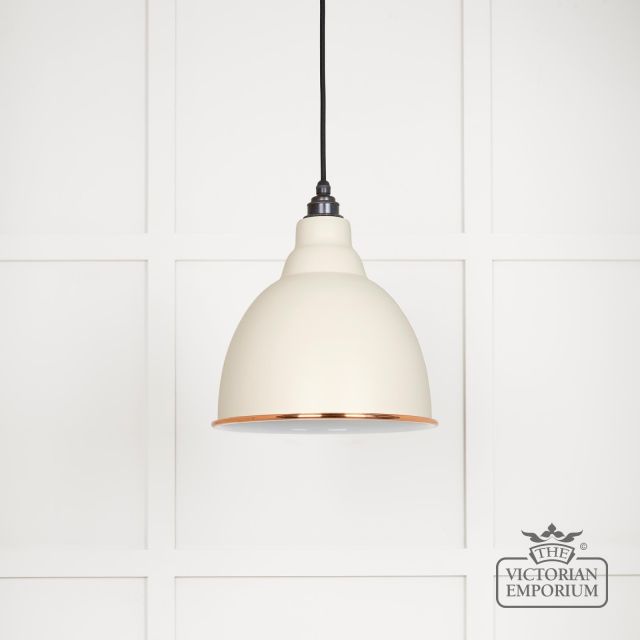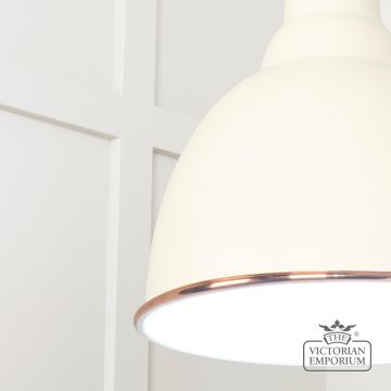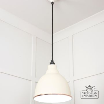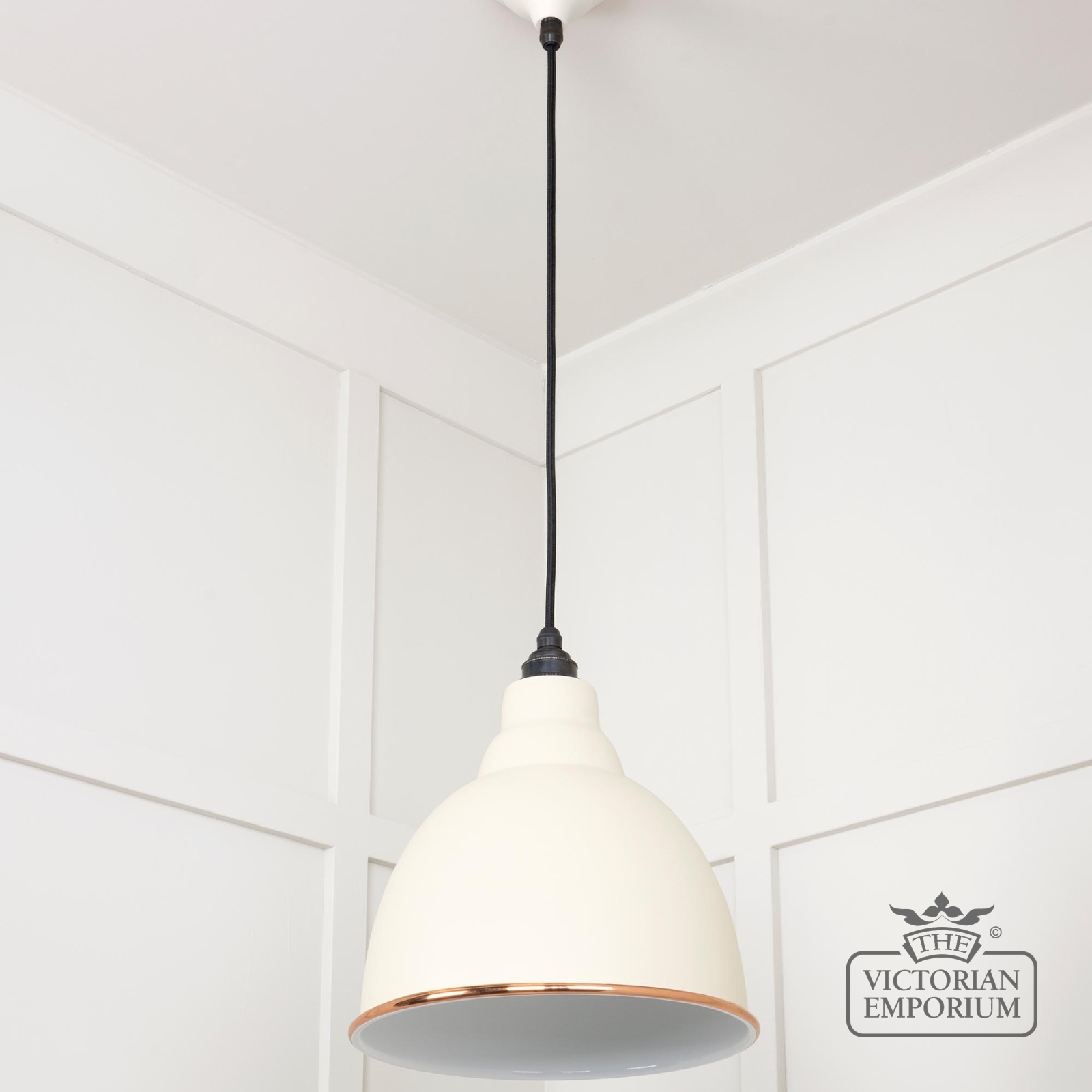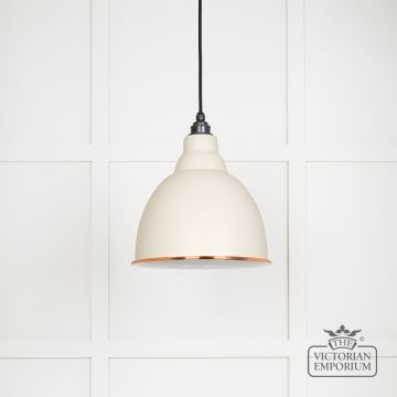 This pendant is hand spun from solid copper and finished in White Gloss and Teasel paint with a black fabric cable. This one has a beautiful white gloss interior and Teasel exterior