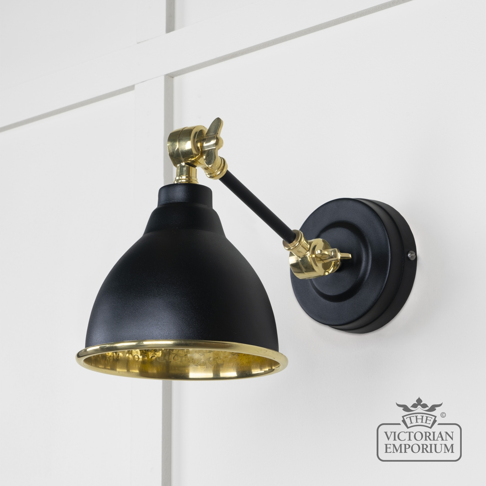 Brindle Wall Light in Hammered Brass with Black Exterior