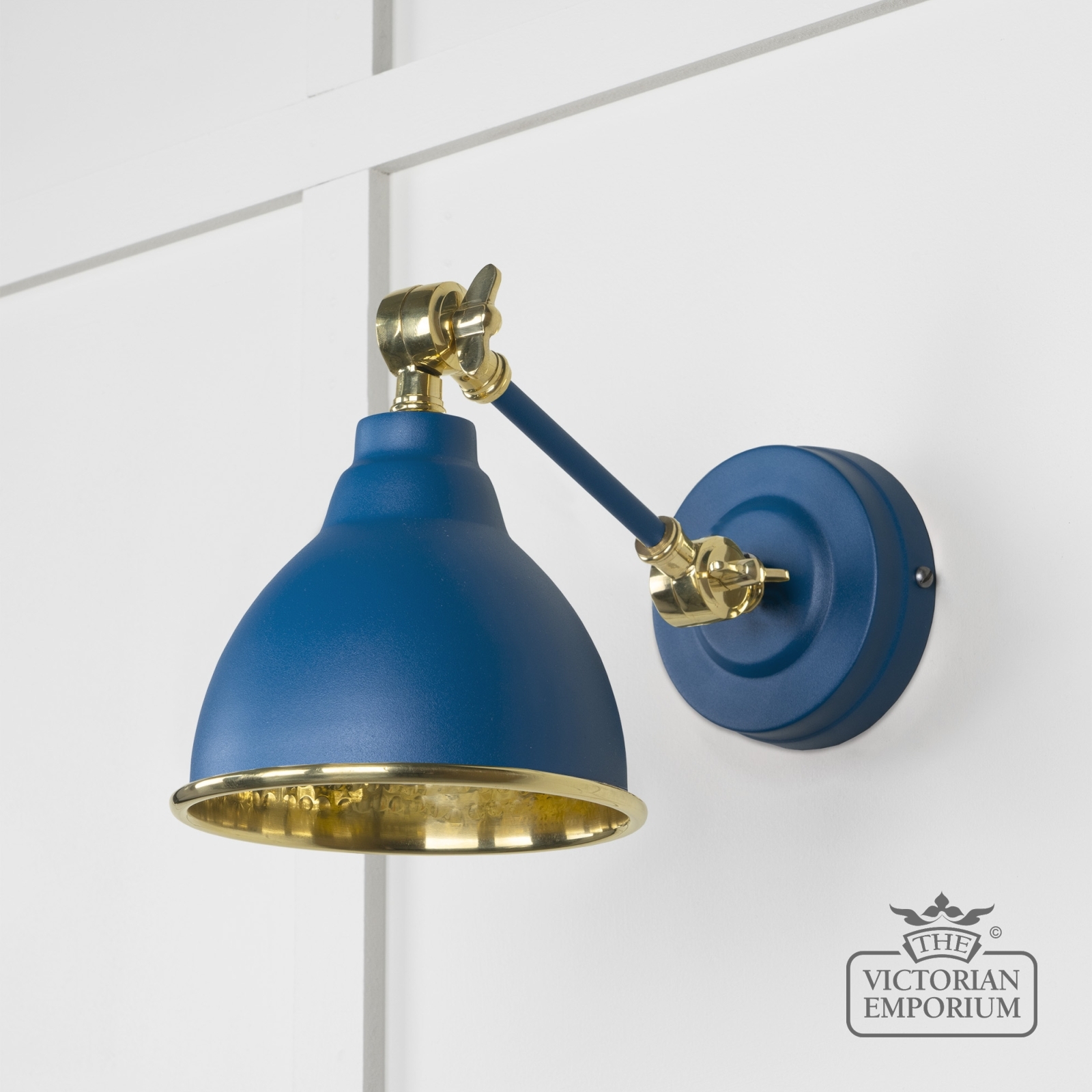 Brindle Wall Light in Hammered Brass with Upstream Exterior