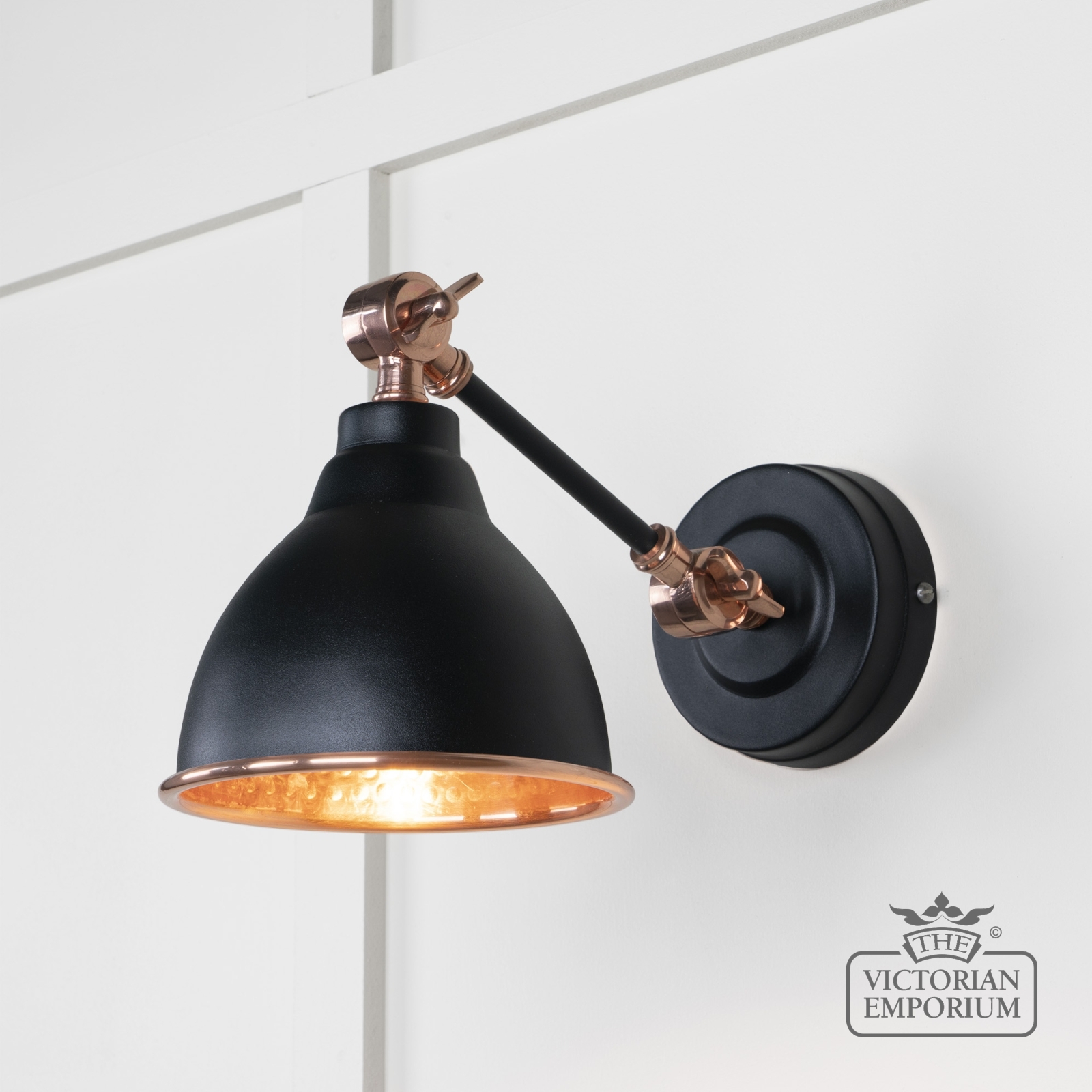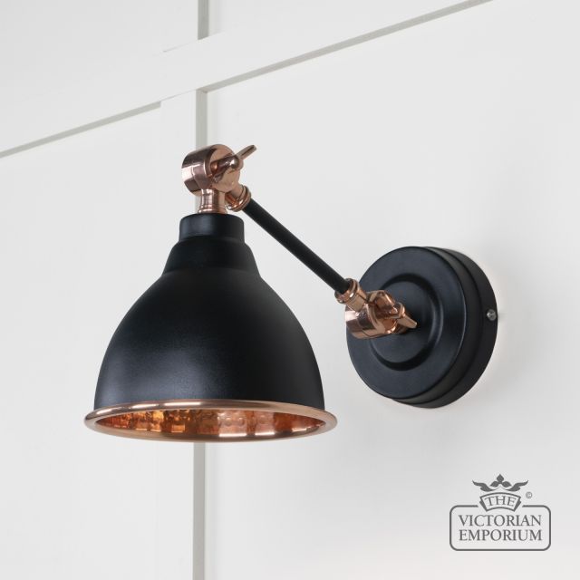 Brindle Wall Light with Hammered Copper Interior and Black Exterior