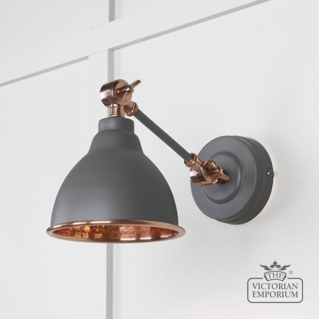 Brindle Wall Light with Hammered Copper Interior and Bluff Exterior