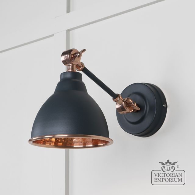 Brindle Wall Light with Hammered Copper Interior and Soot Exterior