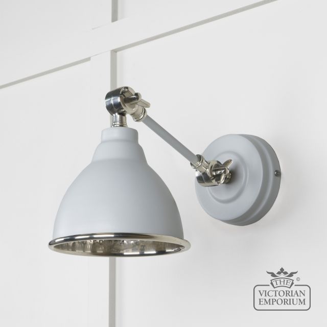 Brindle Wall Light with Hammered Nickel Interior and Birch Exterior