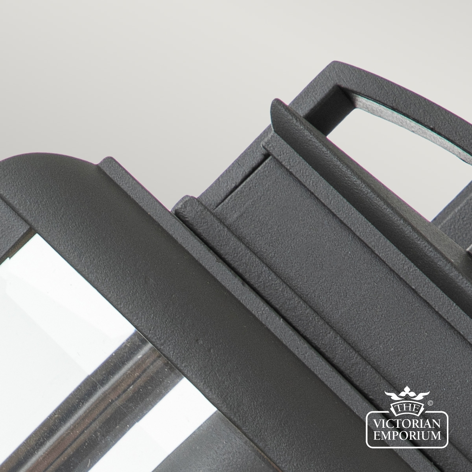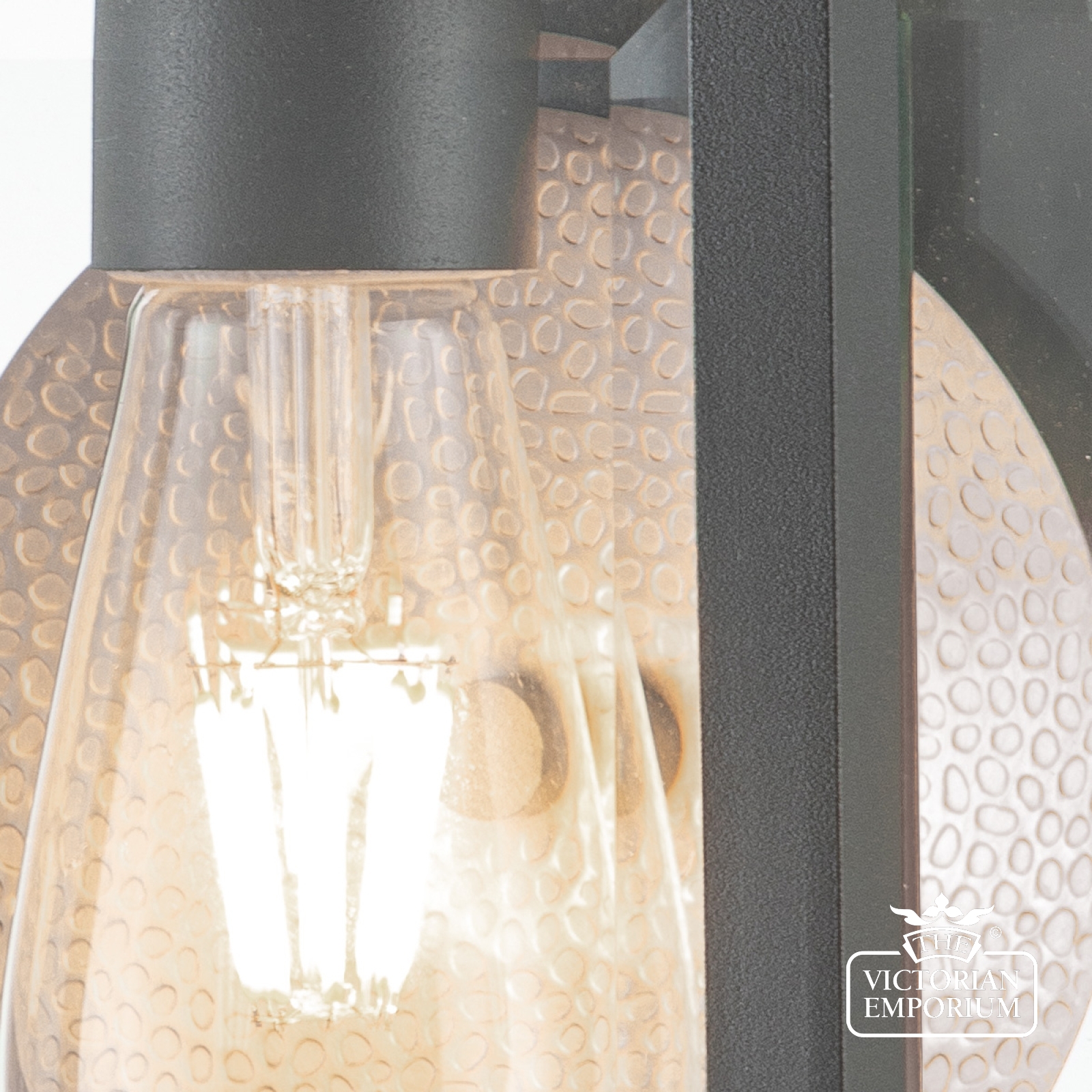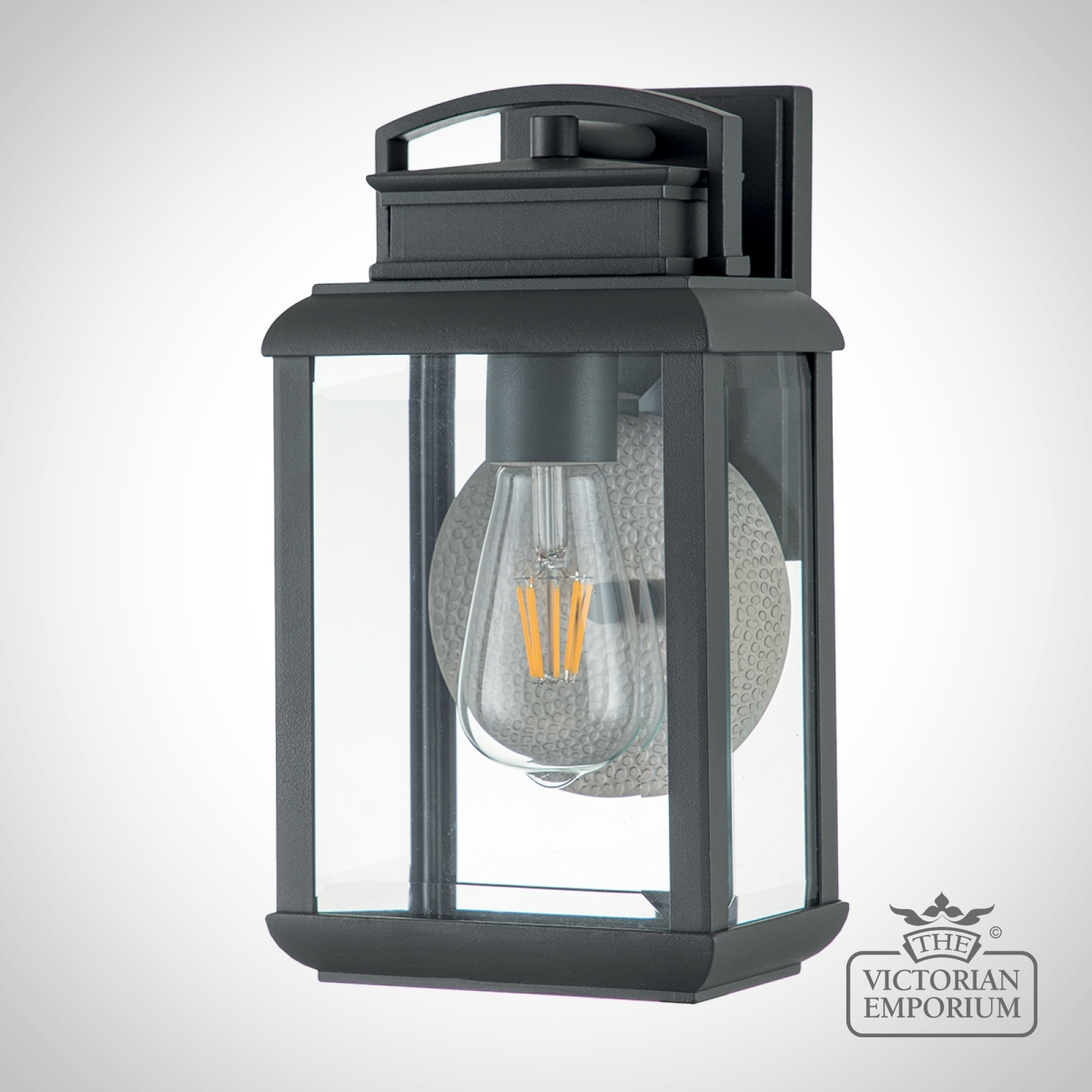 This period wall light fitting features a vintage bulb for a historic look and is enhanced by the pewter plate directly behind it. The clear bevelled glass and the Graphite finish complete the look. Perfect either side of a front door