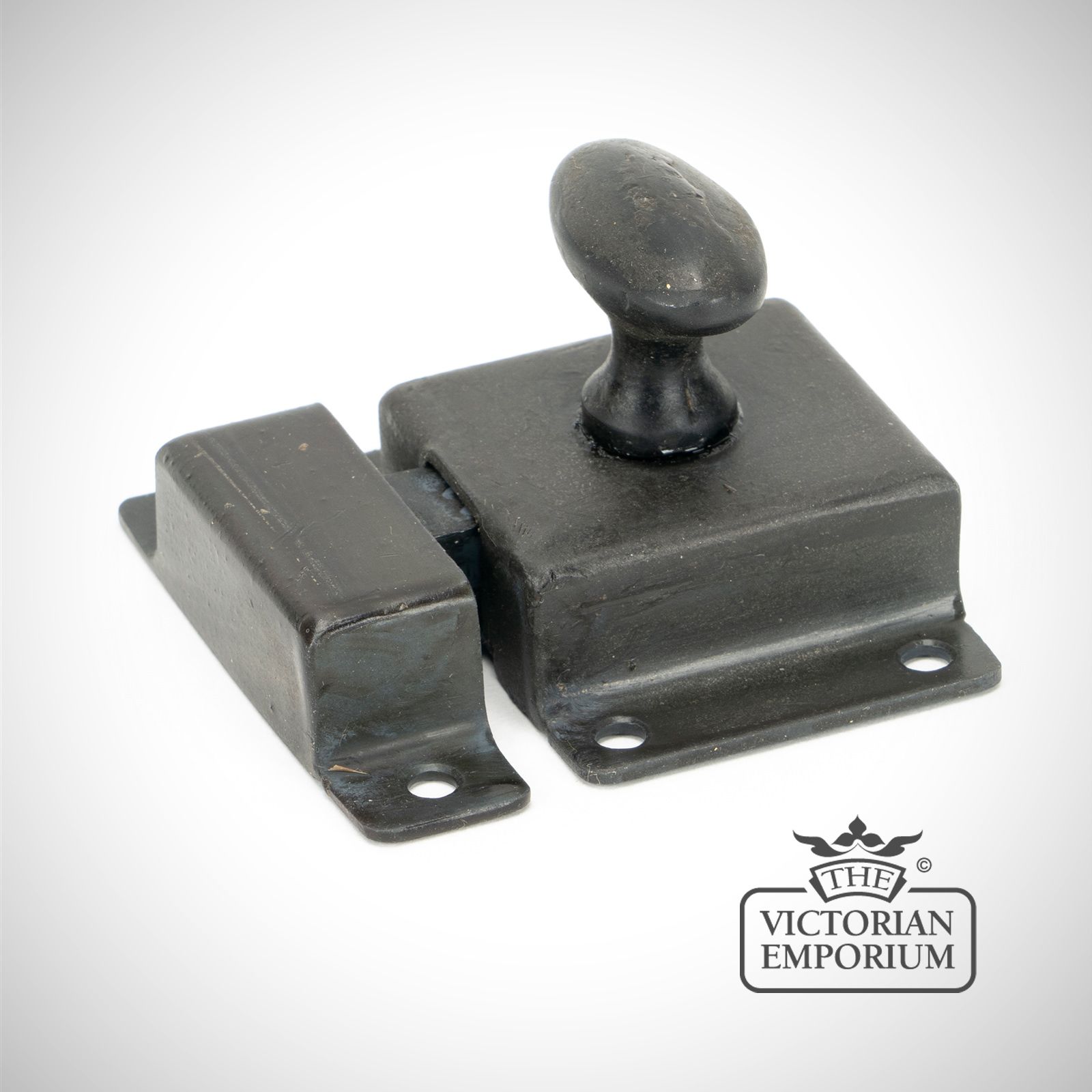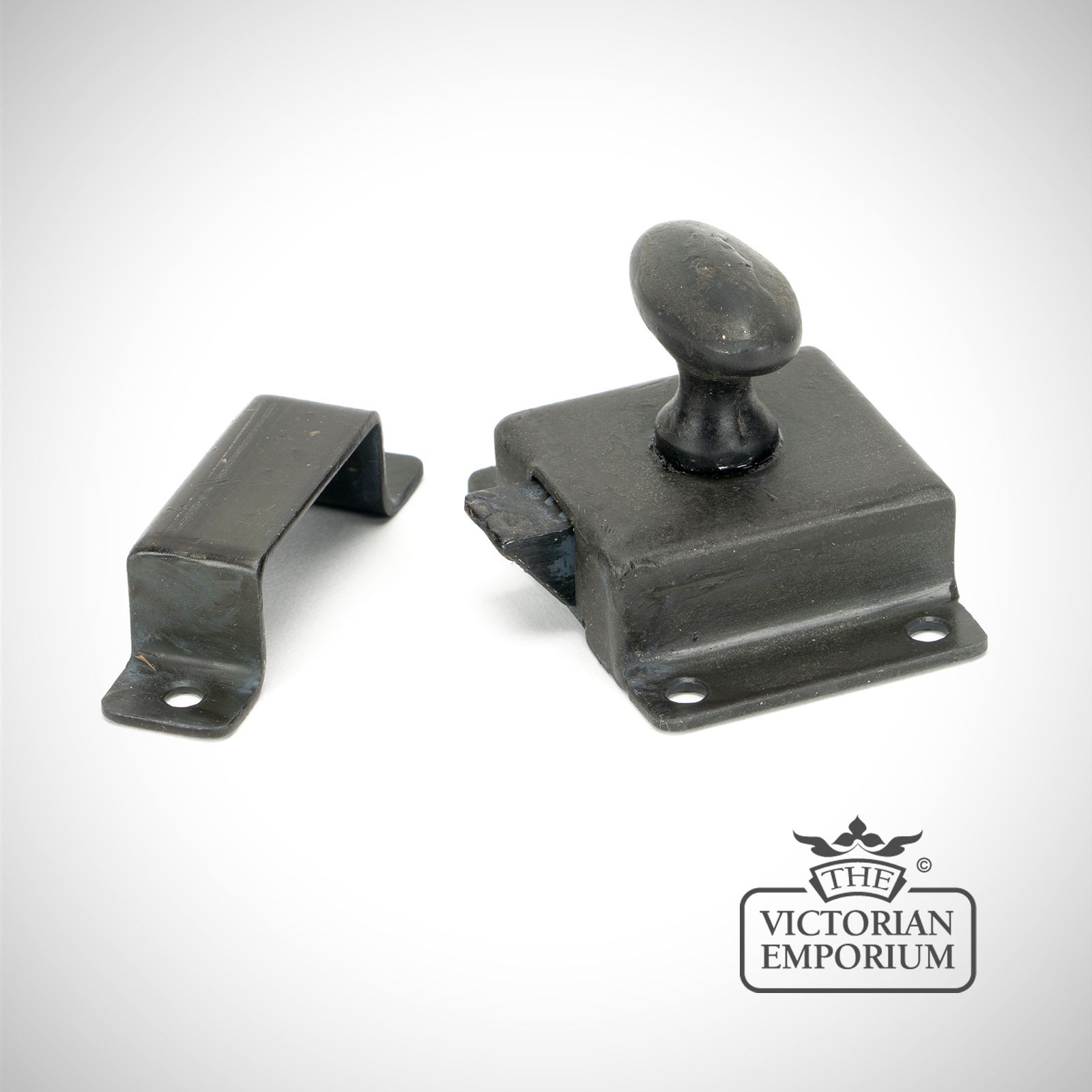 The rustic style oval knob retracts the sprung latch allowing the doors to be opened.