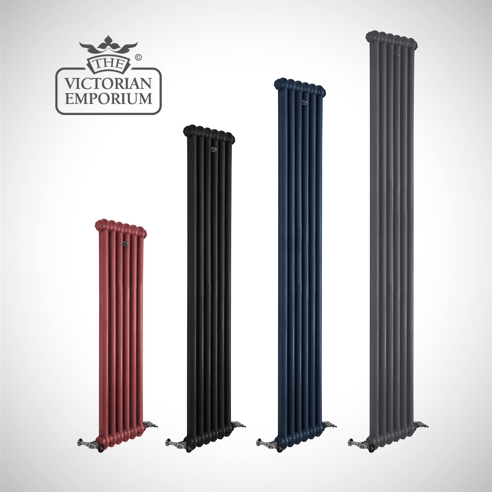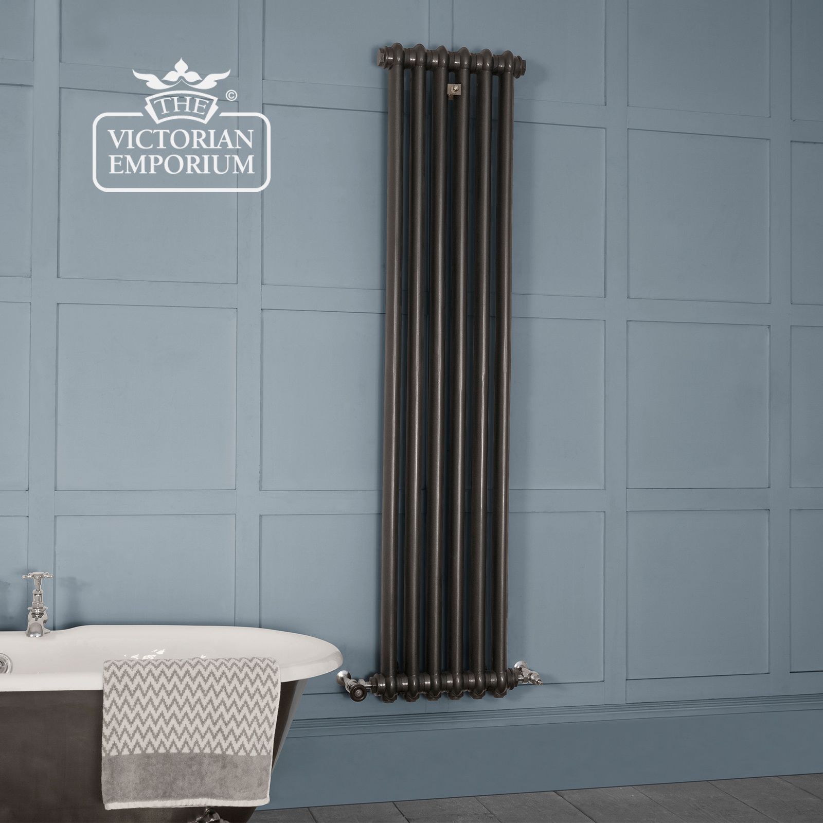 A vertical cast iron radiator with columns in a traditional shape, perfect for confined space where only a wall hung tall radiator will work.
