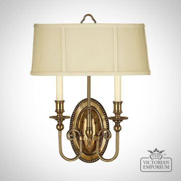 Cambridge Double Brass Wall Sconce with Large Shade