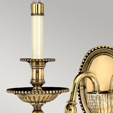 Solid brass construction in a Burnished Brass finish. . The solid cast components, brass turnings, beaded ball fonts and clear optic glass reinforce its timeless style