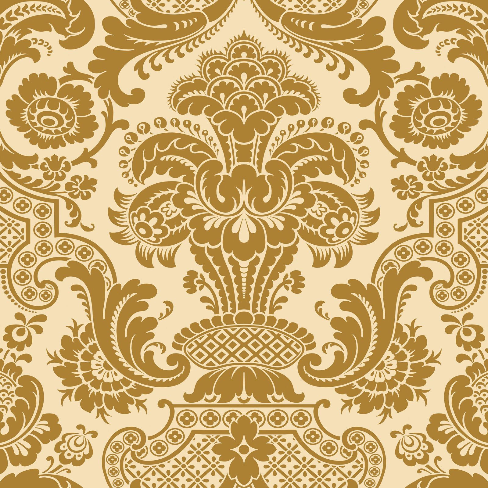Carmen Damask Wallpaper - Ornate Metallic Ink Wallpaper in 5 Choices - Metallic Gold on Sand