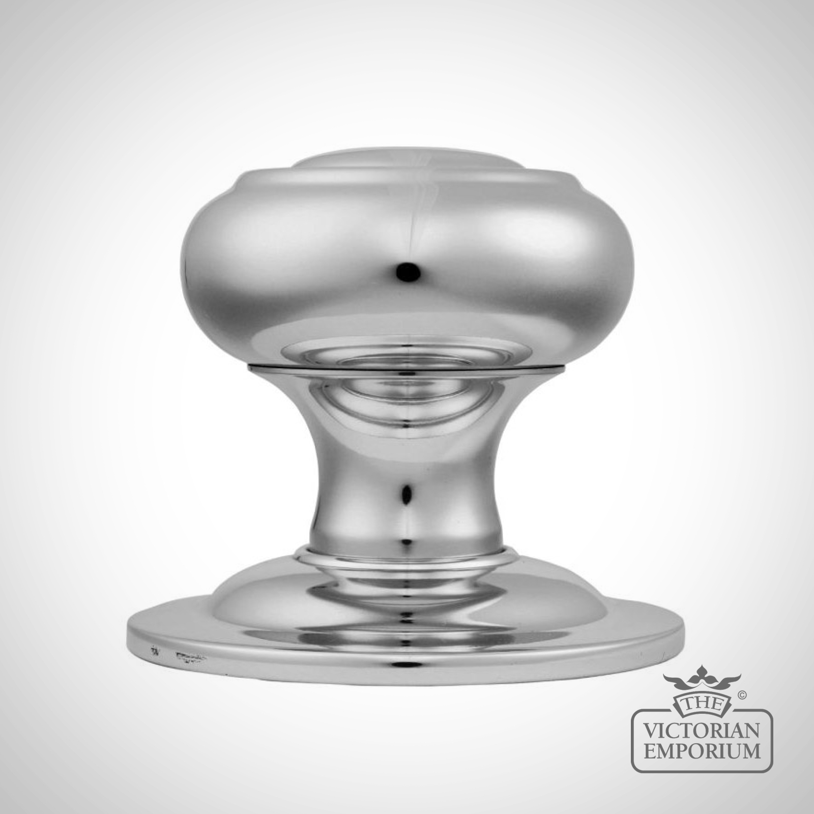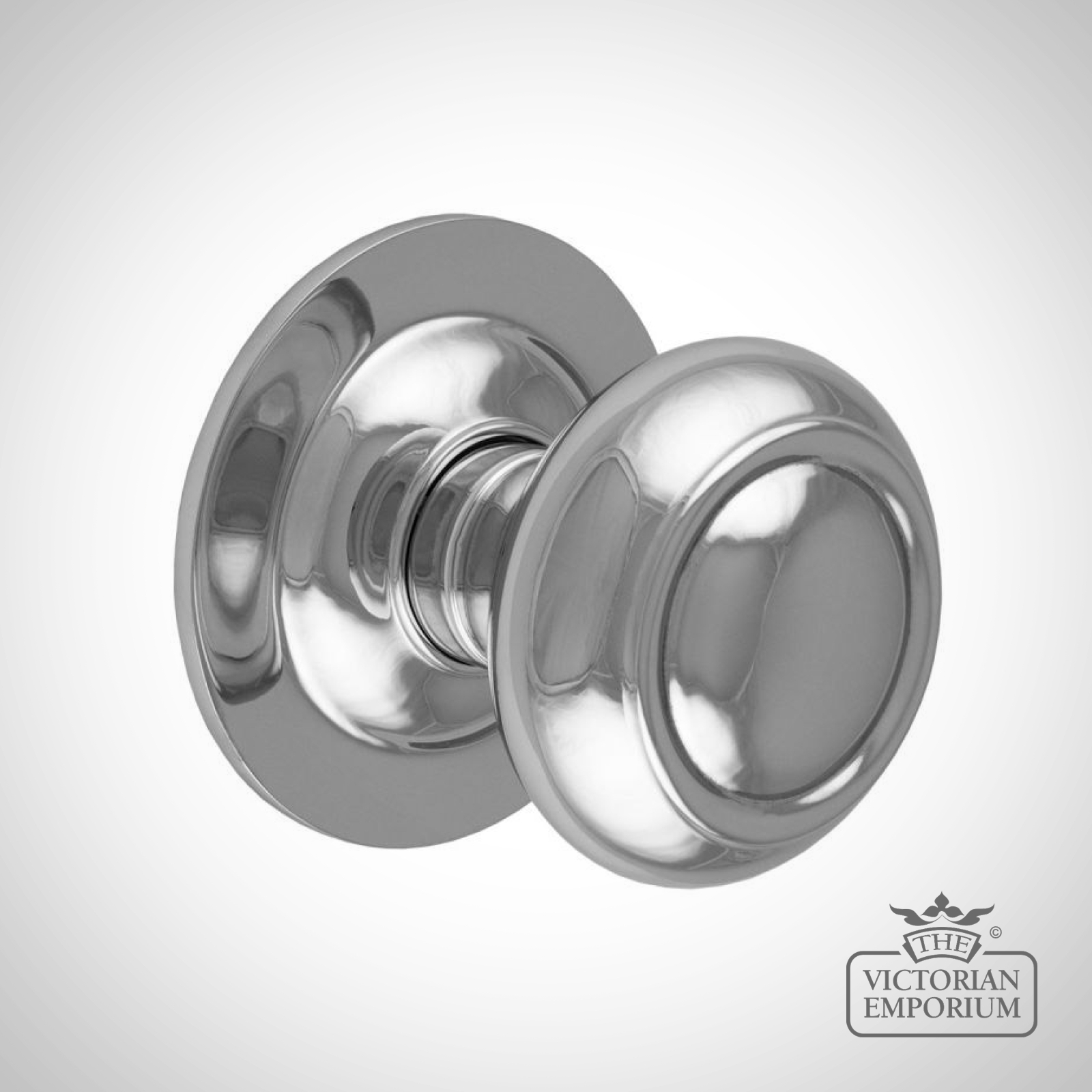 Centre door knob - smooth styled mushroom knob which sits on an elegant tiered rose.