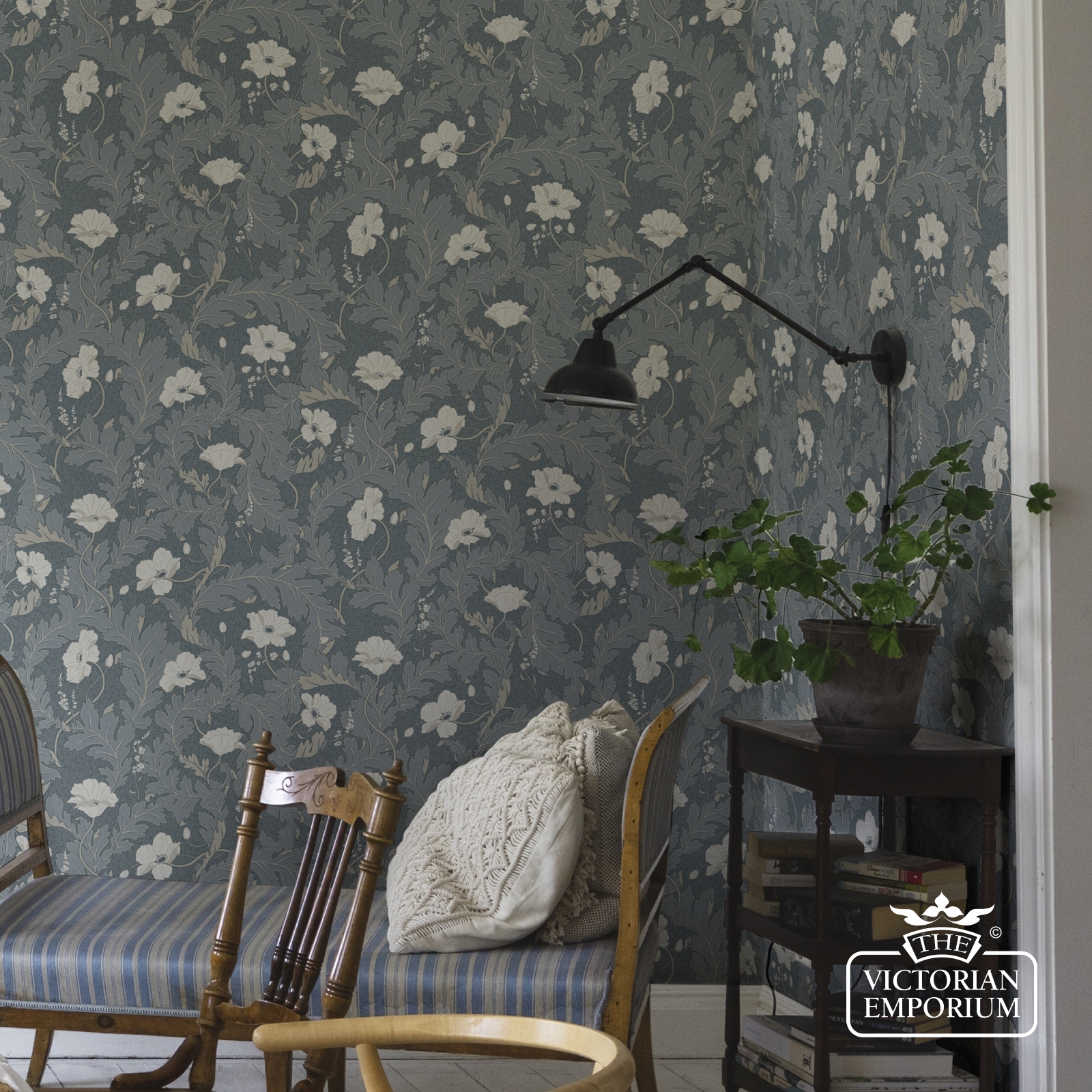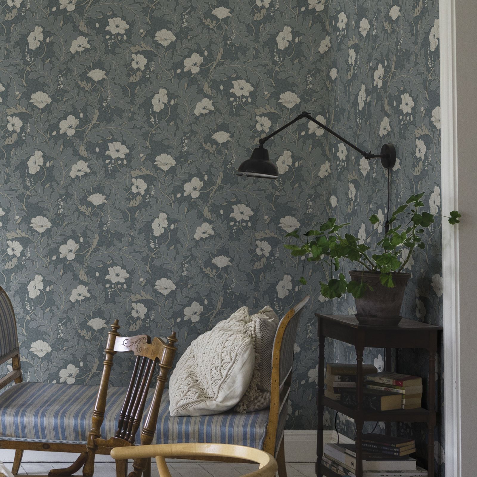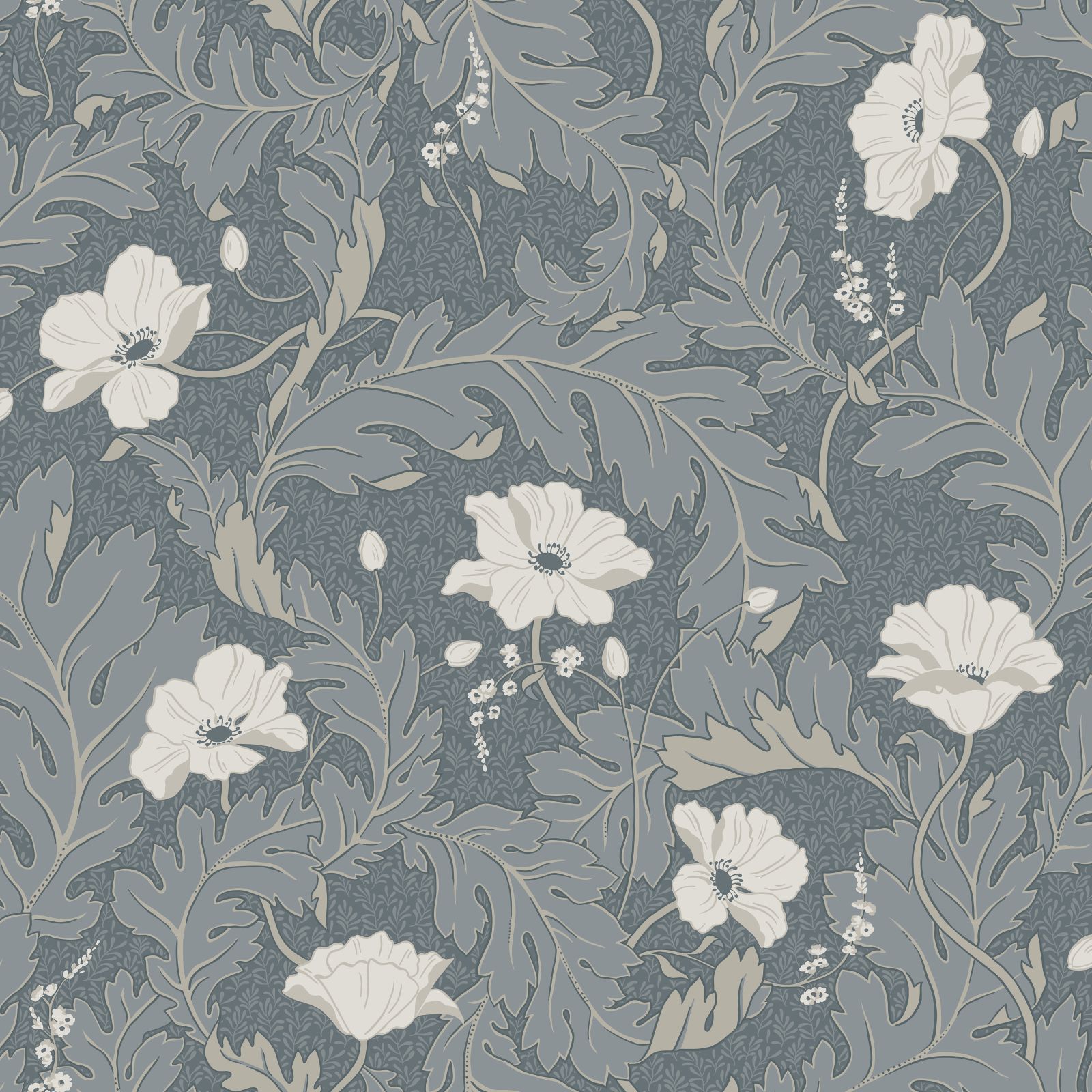 A poppy dancing in the wind, wrapped in winding foliage. Providing a sense of cosiness and softness at first glance, a closer look reveals wonderful details.