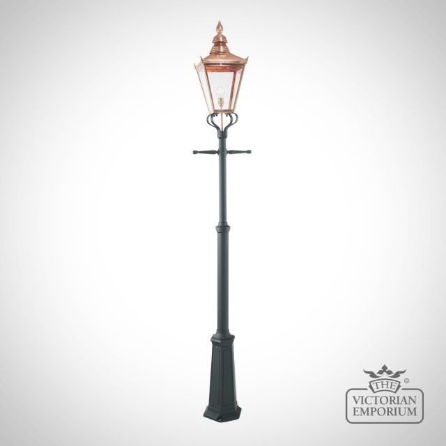 The Chelsea Copper lanterns are fabricated by hand and due to the nature of copper, will naturally age and become more beautiful over time. The fixings such as brackets and posts are made from aluminium and powder coated in black. They have clear polycarbonate lens. Chelsea products have a 10 year warranty against structural failure for Copper parts and 5 year warranty against severe corrosion for Aluminium parts.